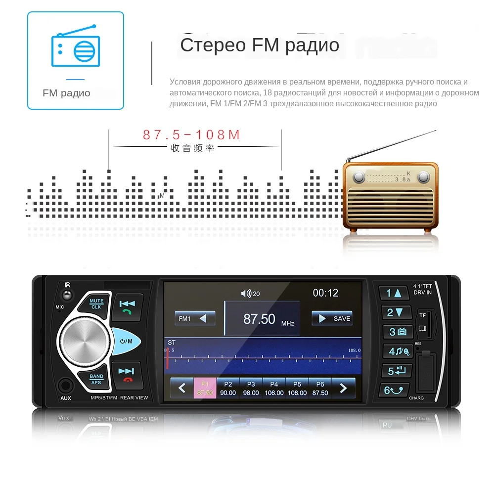 Диапазон FM: 87,50 МГц-108,00 МГц