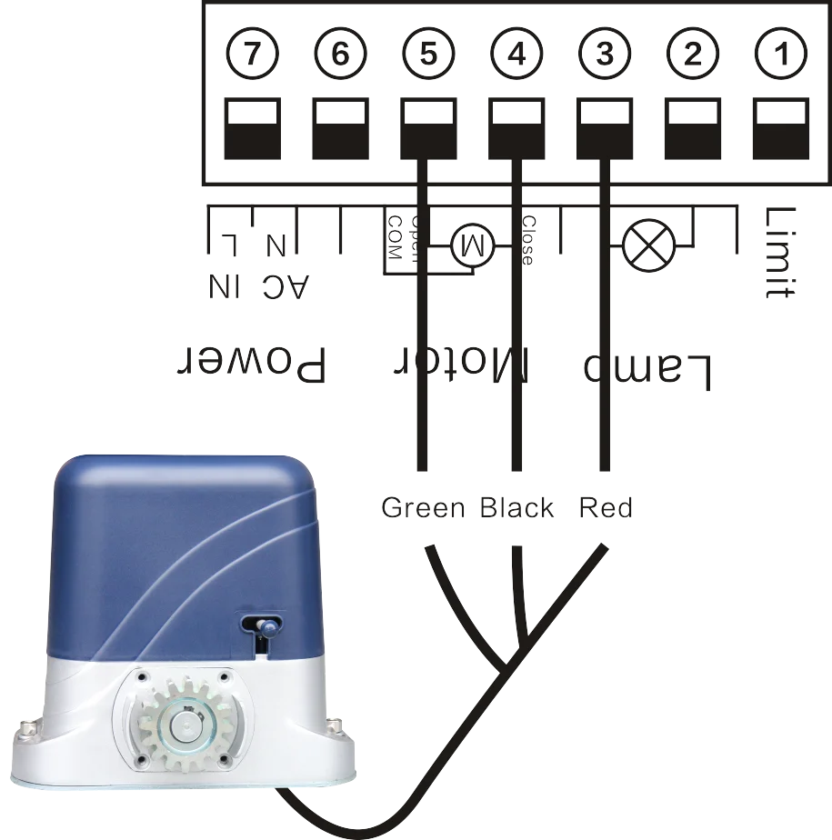 --- Подключение двигателя, флэш-светильник, фотоэлемент, кнопка, клавиатура и т. Д. На клеммной проводке.