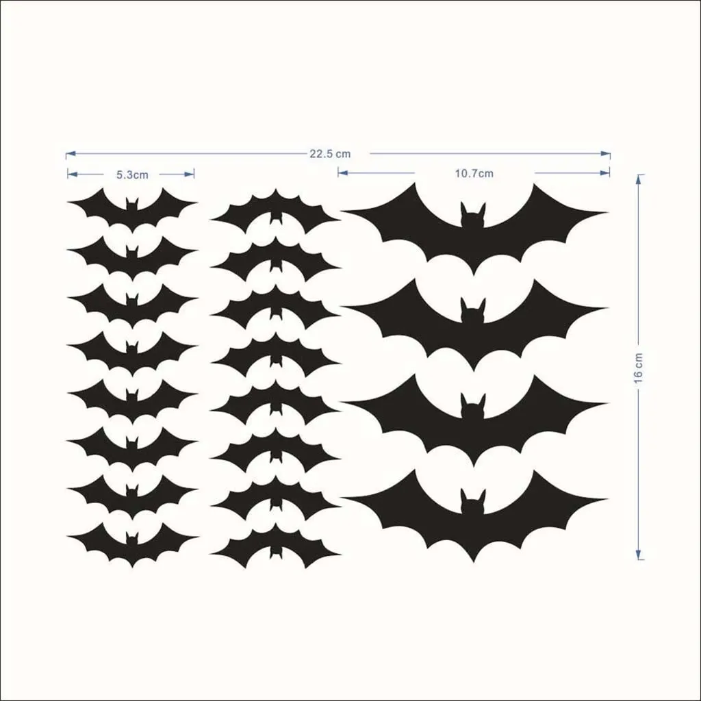 120 шт микс Размер 3D наклейка в форме летучей мыши: 24 шт. 16x4 см, 24 шт. 12x3 см, 72 шт. 9x2 см, 24 шт. 8x4 см