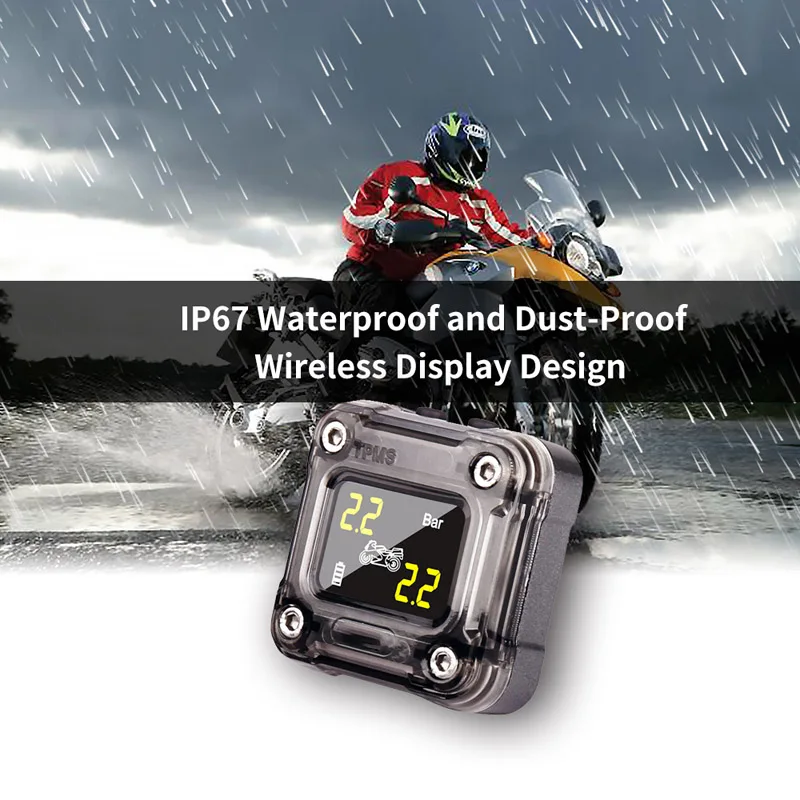 Real time monitor pressure and temperature of two tires at the same time, alarm trigger once the pressure and temperature under abnormal condition
