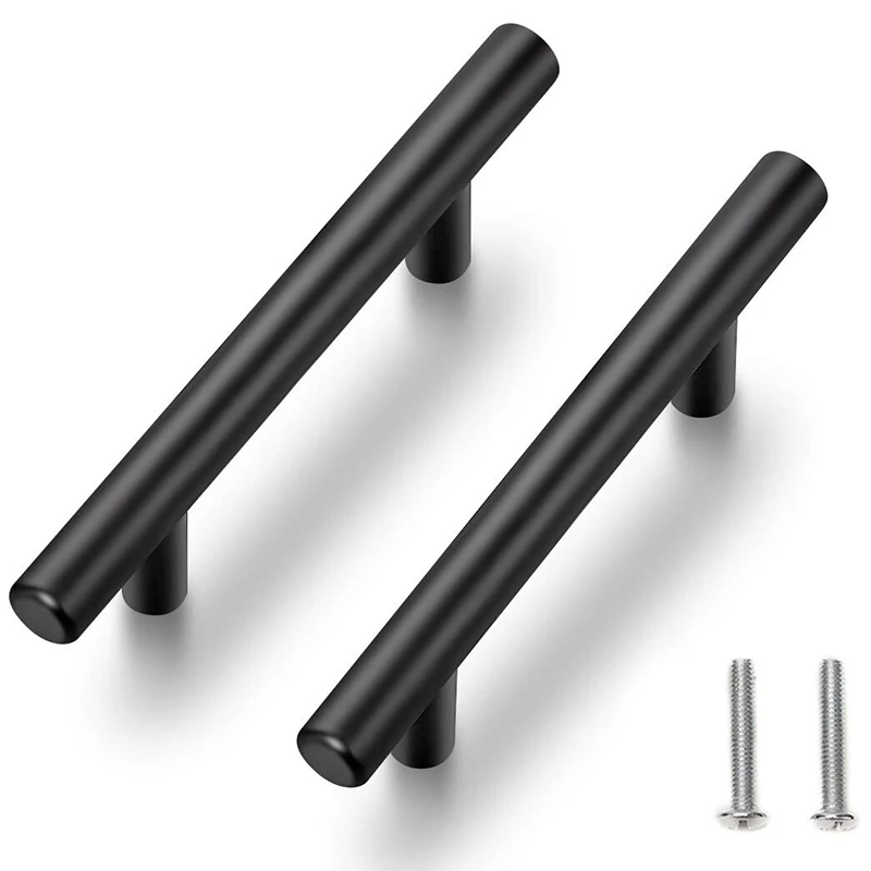 Плоский черный современный шкаф аппаратный ящик ручка кухонный шкаф t-бар вытяжной комод набор регуляторов расстояние между отверстиями 25 упаковок