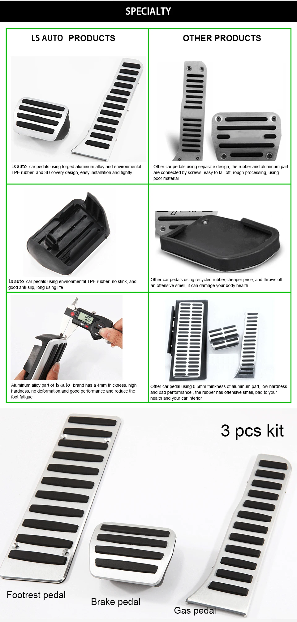 LS автомобильные накладки на педали для Audi Q3 AT, алюминиевые нескользящие накладки на педали для автомобиля, накладка на педаль акселератора