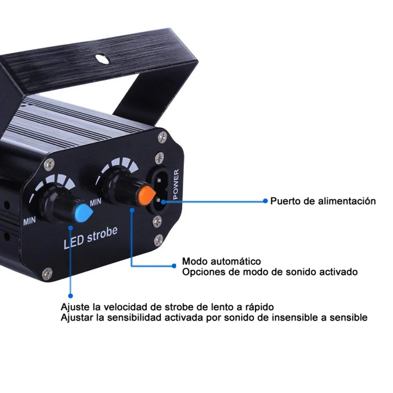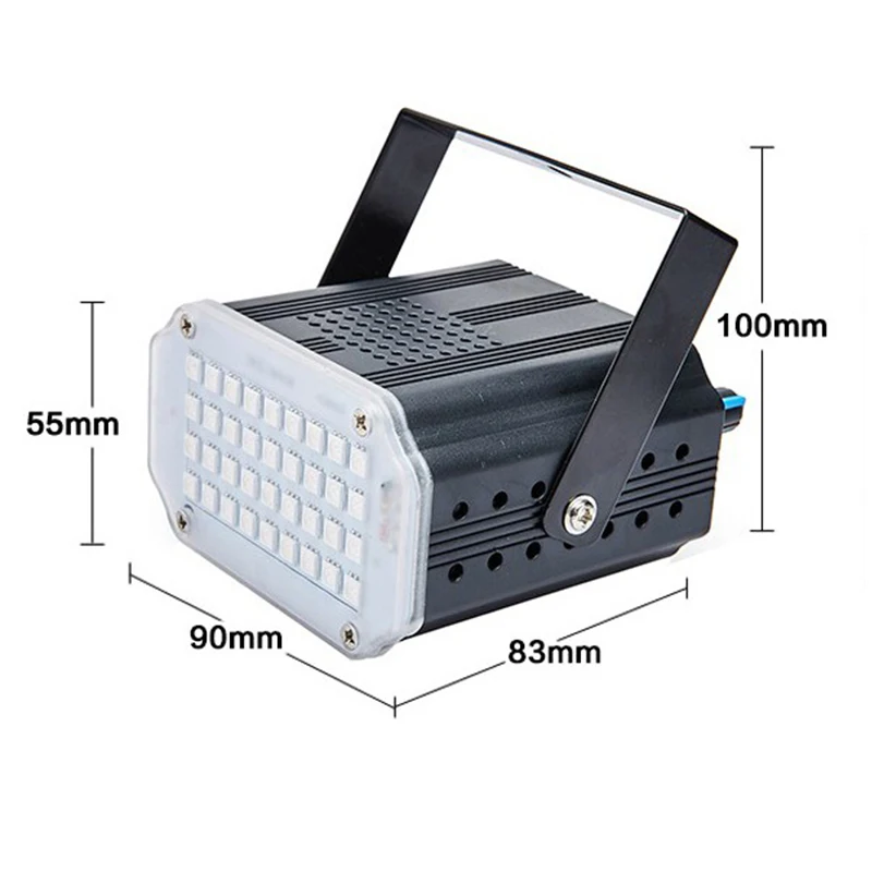 Напряжение: AC90-260V 50-60 Гц Мощность: 10 Вт Источник света: 36 шт. 5050 белый Эффект: стробоскоп, звук (скорость можно регулировать) Режим управления: авто, звук, стробоскоп Материал: алюминиевый сплав Применение: диско, бар, КТВ, дом