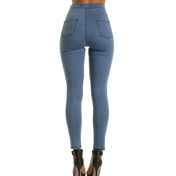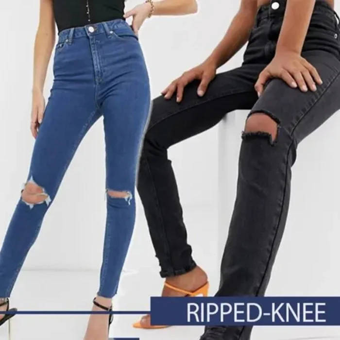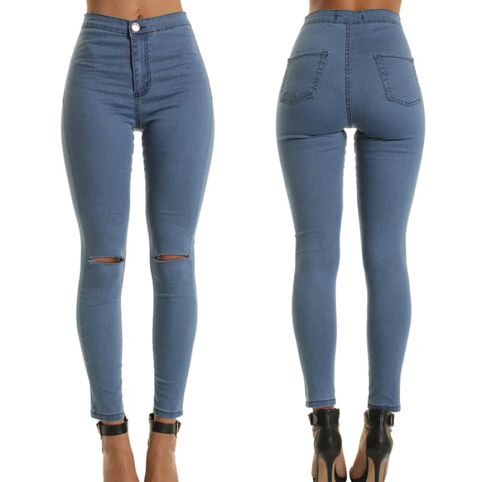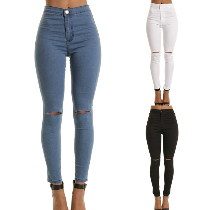 1. Рваные обтягивающие брюки с высокой талией-обтягивающие джинсы с эффектом приклада и формирования.