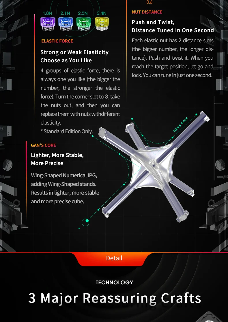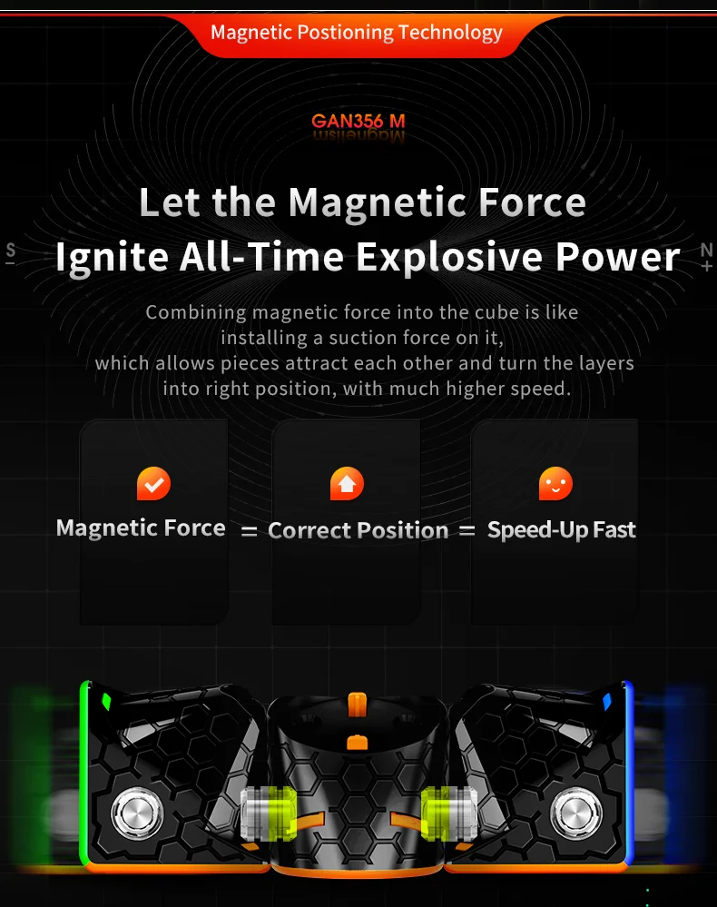 Магнитный 3x3 скоростной куб среднего диапазона от популярного производителя GAN. Эта версия поставляется с уникальным ручным регулируемым числовым ядром IPG GAN и набором запасных гаек GE.