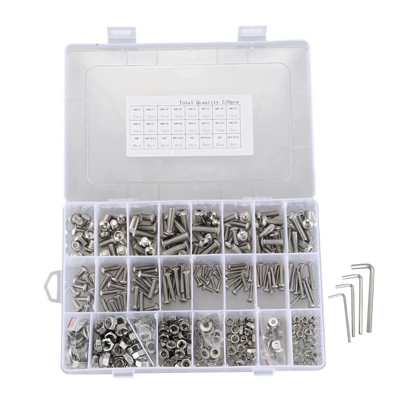 Много различных размеров винтов M3 M4 M5 M6 (Тип привода: Шестигранная розетка; Тип головки: головка кнопки) с соответствующими гайками и плоскими шайбами отвечают различным требованиям людей, о необходимости вашей домашней жизни.