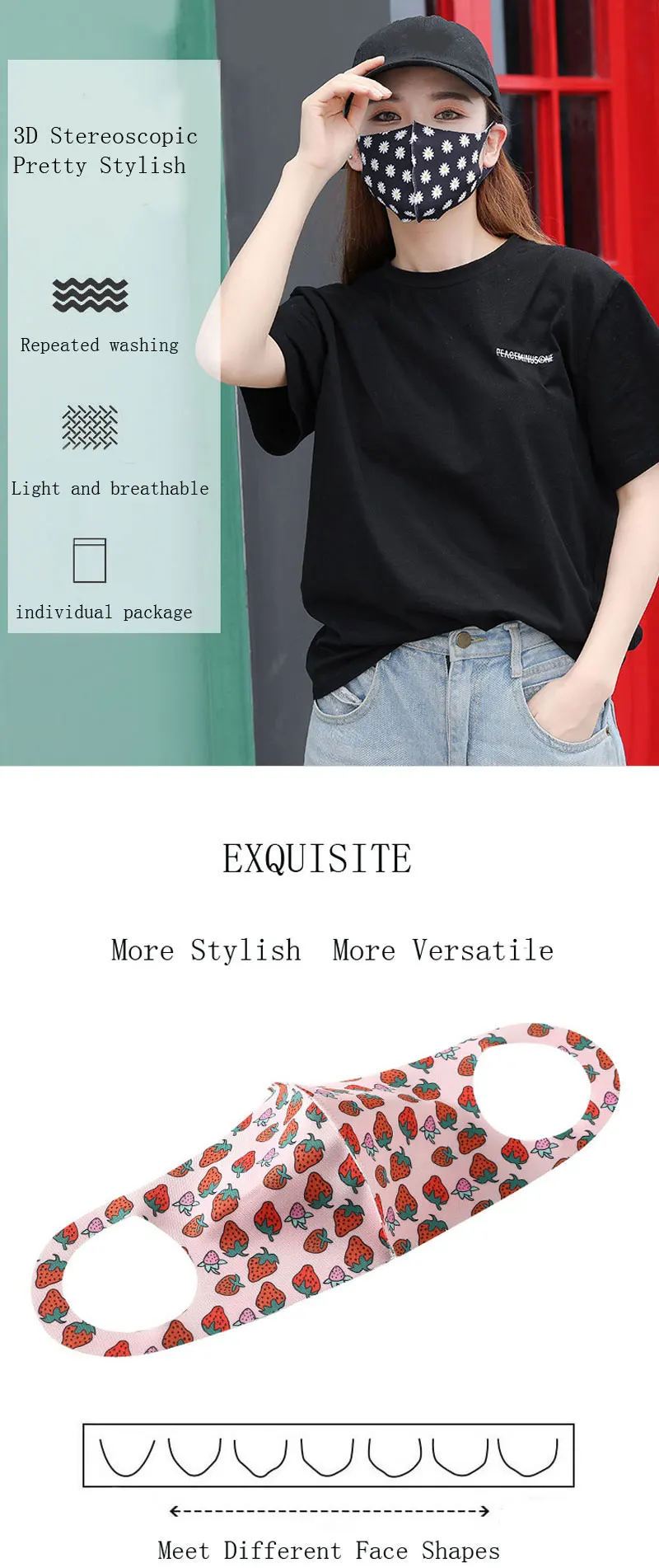 Женская маска дышащая хлопковая модная черная розовая многоразовая маска для лица Высокое качество моющаяся маска для лица