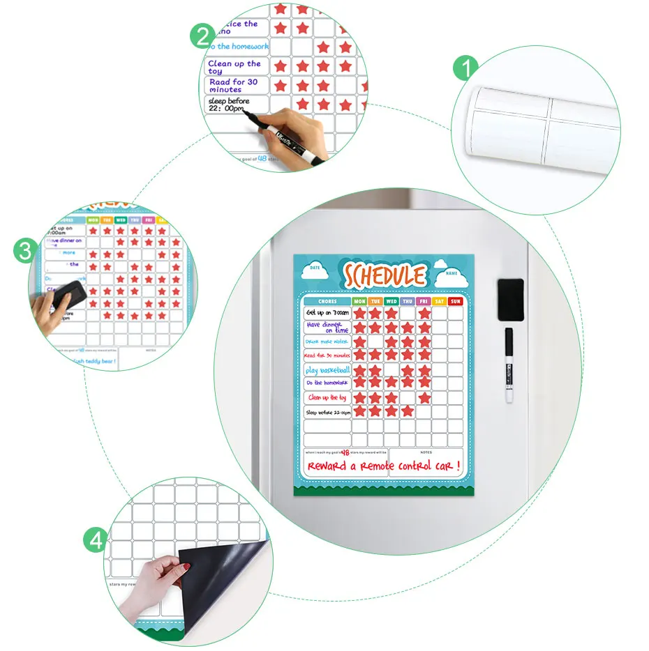 40x30 см расписание + маркерная ручка + Ластик + 70 шт. магнитная наклейка со звездами
