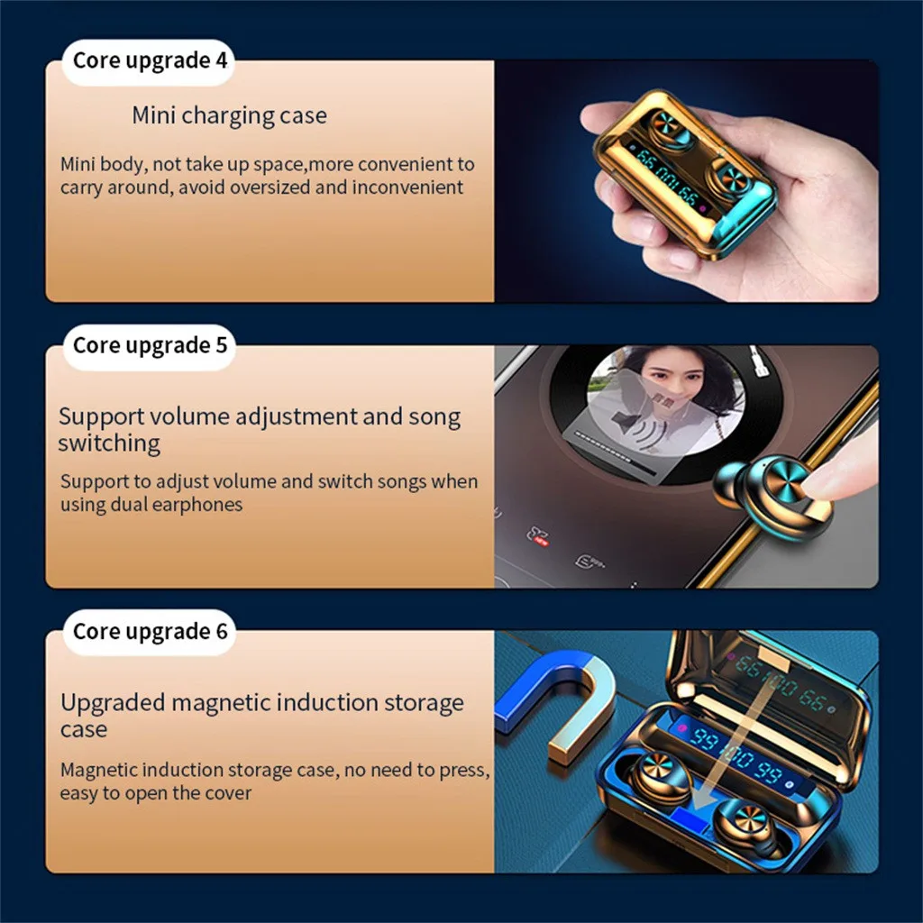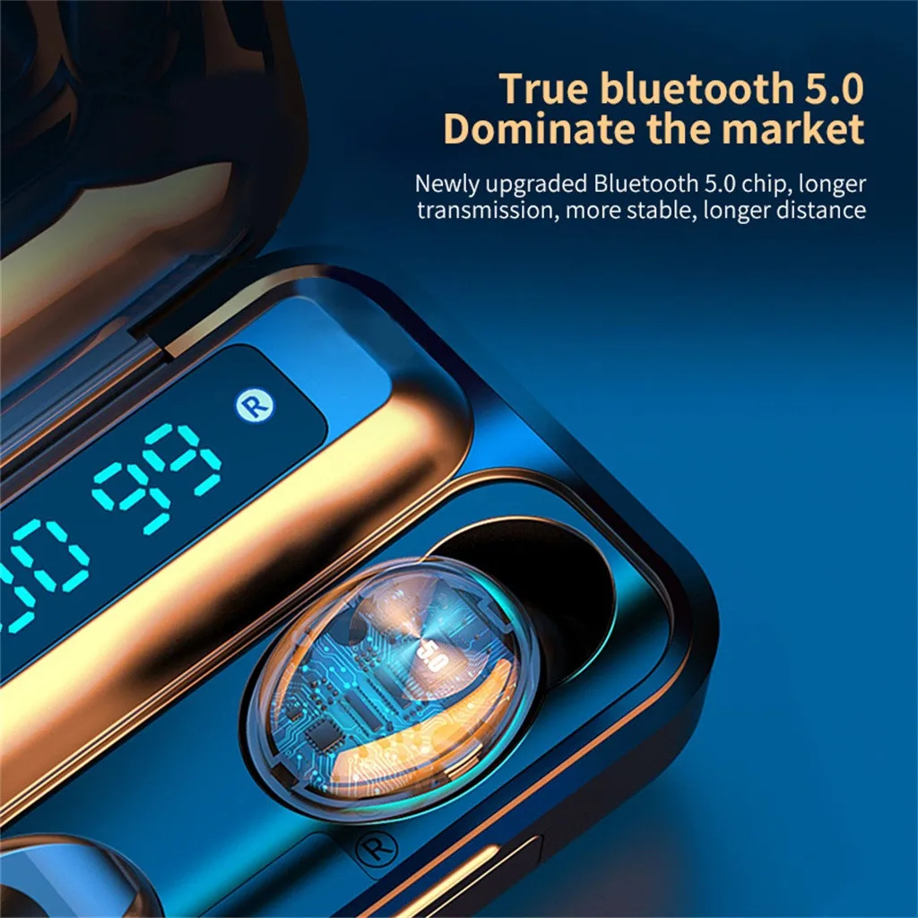 Светодиодный три цифровых дисплея позволяют четко понять специфическую емкость двух наушников и емкость зарядного отсека, чтобы вы могли избавиться от проблем без питания Эти настоящие беспроводные bluetooth-наушники оснащены чипом Bluetooth 5,0, автоматическим сопряжением с загрузкой, встроенным активным шумоподавлением IC, hd-вызовом и большой емкостью, длительным сроком службы батареи. Этот продукт имеет 14,2 графеновую диафрагму, профессиональную сеть передачи звука из сплава, высококачественный звук, интеллектуальное шумоподавление, чувствительность 108 дБ, бескислородная медная звуковая катушка. Два способа подключения: один/двойной свободный в использовании, одиночное ухо, прослушивание в одиночестве, прослушивание Hi-Fi стерео в обоих ушах. Умная работа Touc-h: Автоматическое включение/выключение/ответ/Отклонение/последняя песня/следующая песня/вызов Siri. Он обеспечивает 5,0 Bluetooth игры без задержки, и электрическая кабина может быть использована в качестве мобильного телефона кронштейн и мобильный телефон аварийного питания для многофункционального использования. Наушники с поддержкой отпечатков пальцев smart touch, кнопка отклонения С водонепроницаемым IPX7, не беспокойтесь о дожде и поте Binaural HD вызов, 5,0 Автоматическое Сопряжение загрузки, CVC8.0 Встроенный активный шумоподавление IC.Параметр: