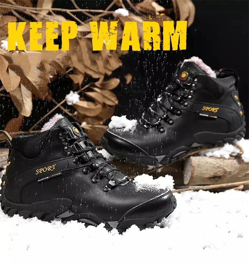 Мужские зимние треккинговые ботинки, горные альпинистские ботинки, треккинговые охотничьи ботинки, мужские высококачественные Водонепроницаемые кожаные ботинки с плюшевой подкладкой