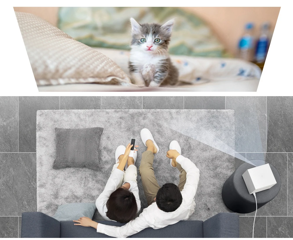 Расстояние размещения почти такое же, как ширина проекционного изображения, так что вы больше не удосужились рассчитать расстояние размещения и сэкономить место в то же время. 2,5 м от проекционной поверхности, вы можете сидеть на 100 дюймовом 1080p Full HD экране