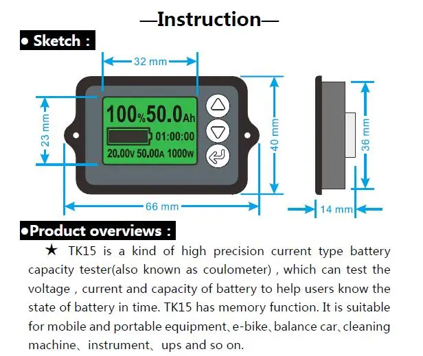 1 x TK15 тестер 1 x шунт Кабель 1x1 м