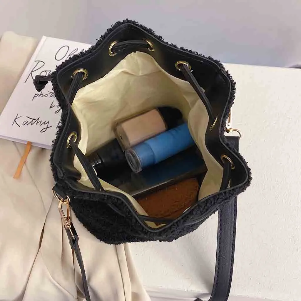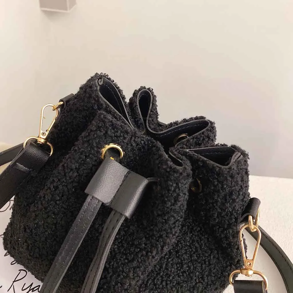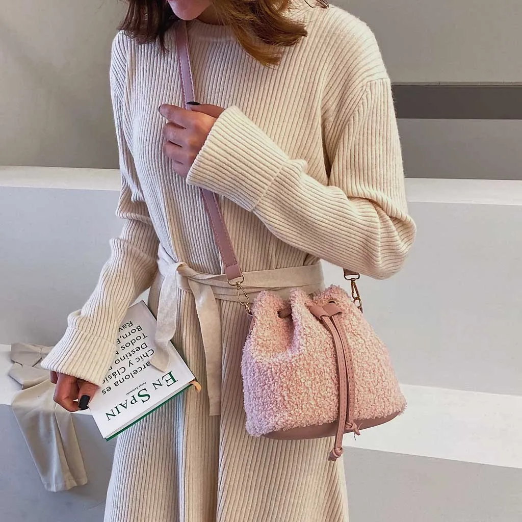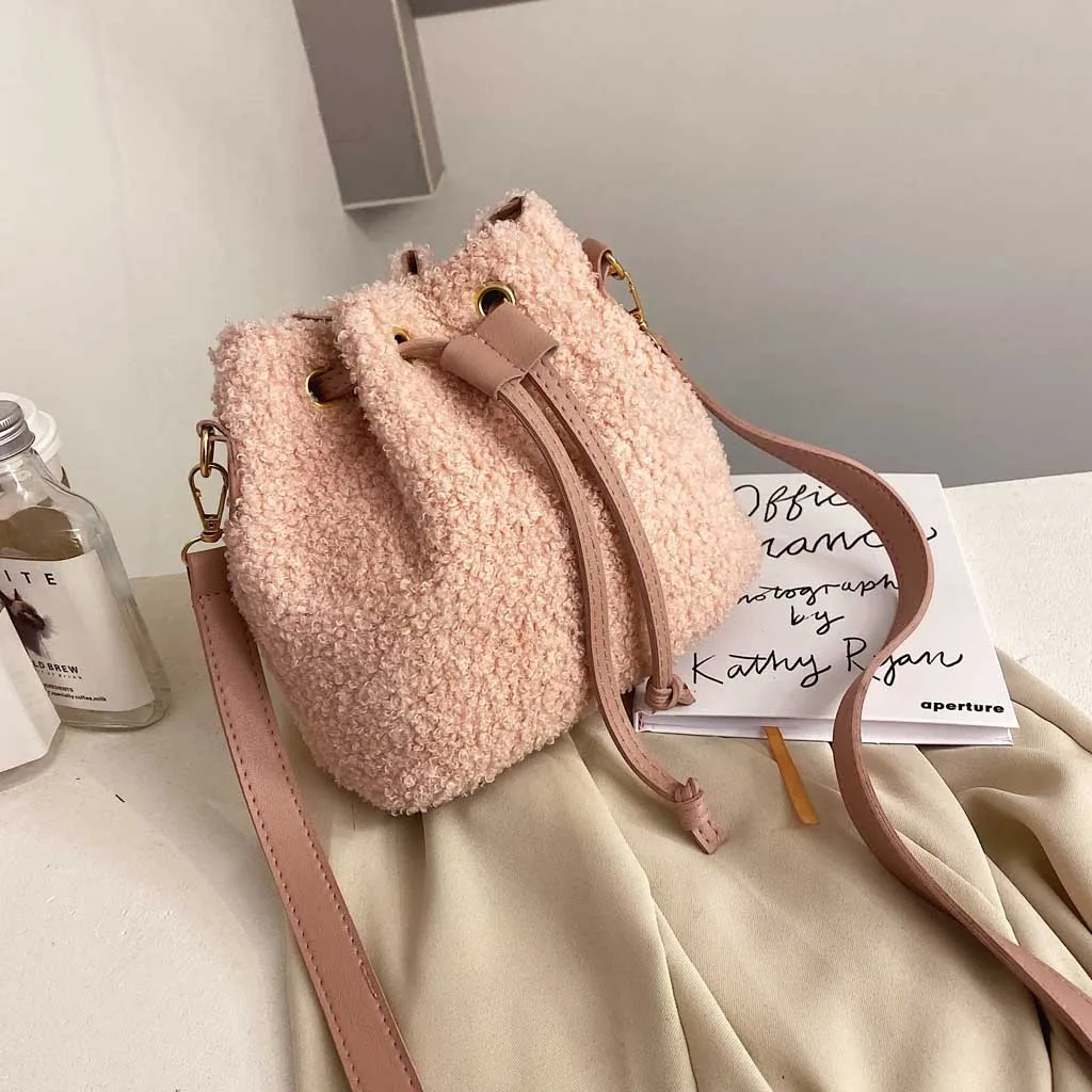 Ladies Bag Messenger Drawstring Casual Bag New Simple Woolen Shoulder Fashion Personality lattice Simple Wild Drawstring