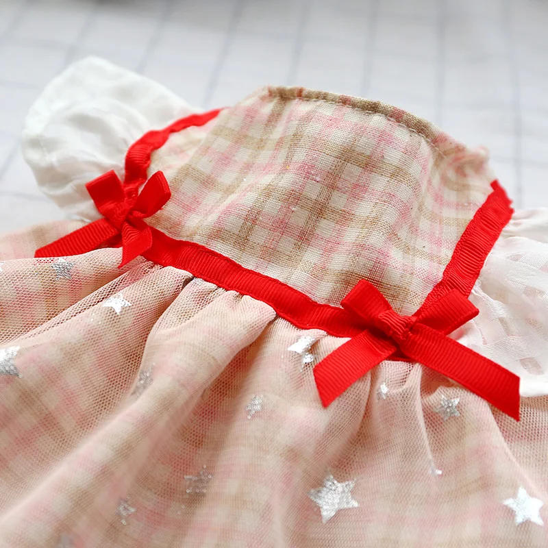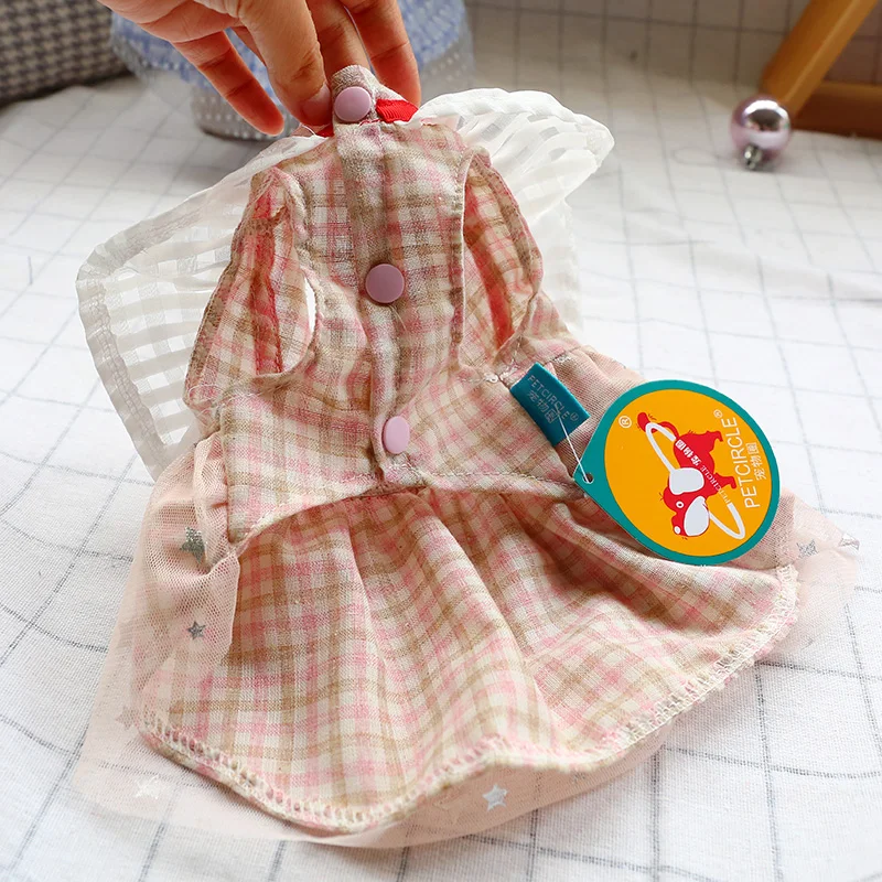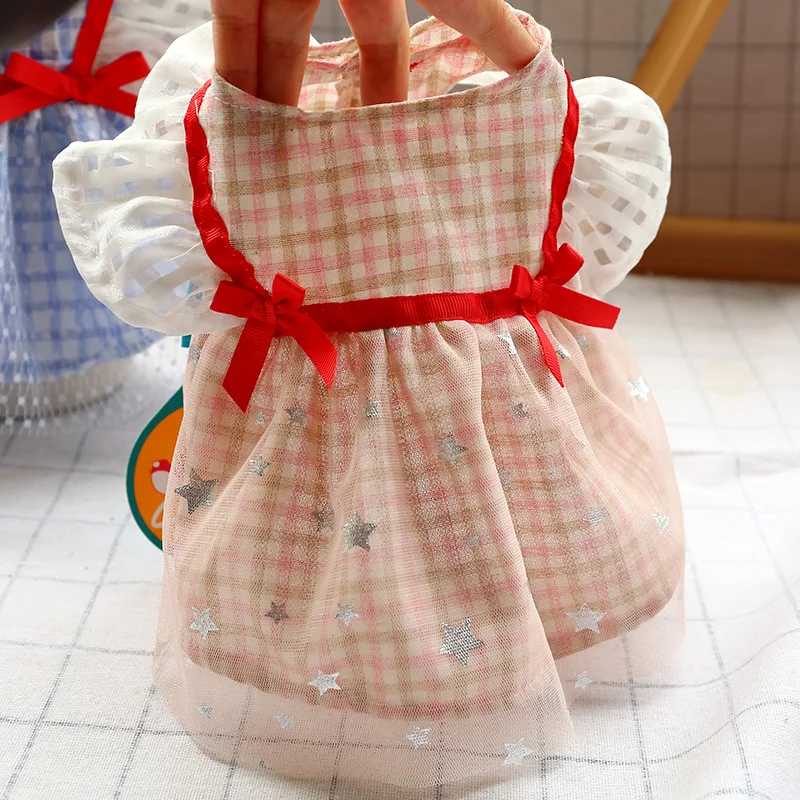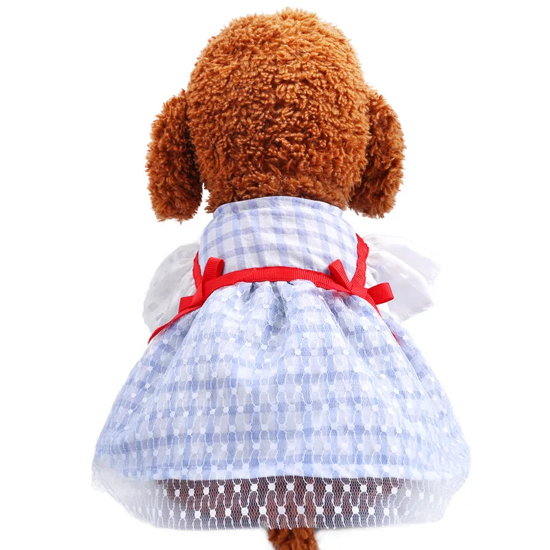Plaid Bows Dog Dresses Blue Pink Girl Lover Pet Clothes Spring Summer Clother Breathable With Tutu Skirt Cat Outfit Poodle Pugs