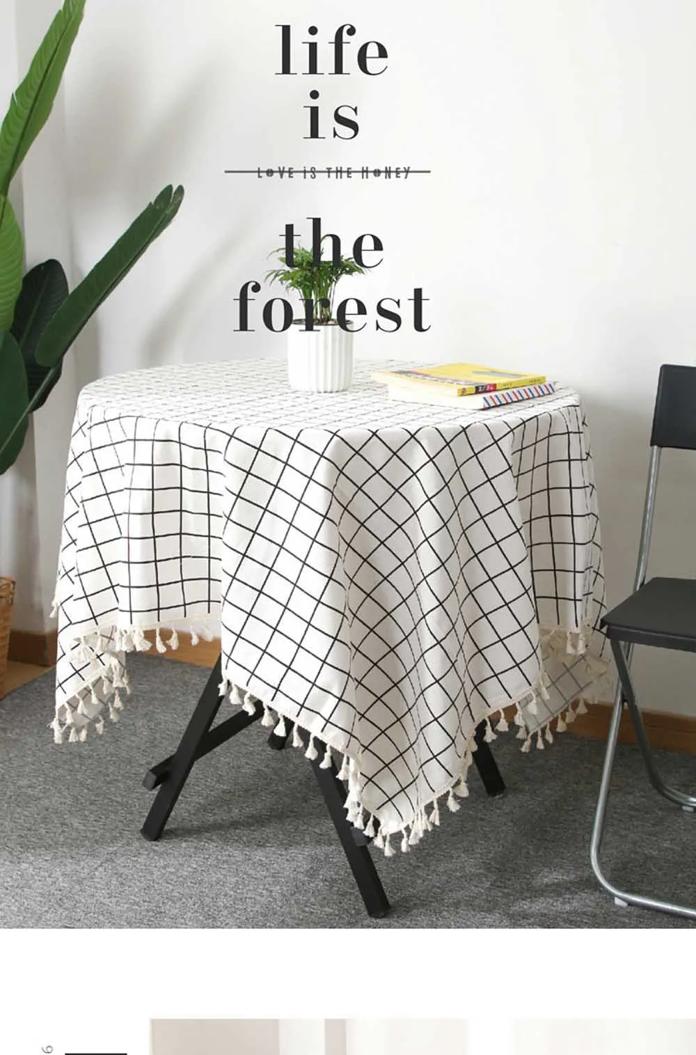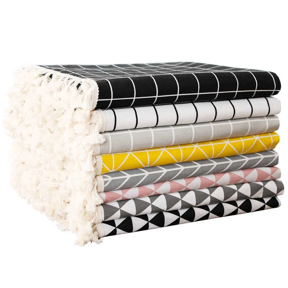 Скатерть из хлопка и льна, домашняя клетчатая полосатая скатерть с принтом, подвеска, Кружевной декор, прямоугольный чайный столик, скатерть для еды