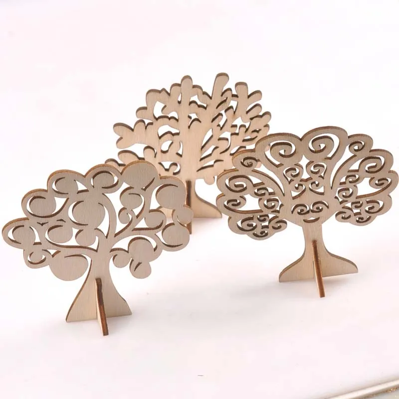 3pcs Tree pattern Natural wood Carft self-standing diy accessories home decor ornament 80mm MT2590