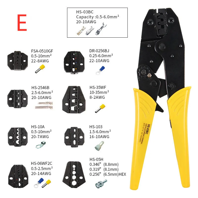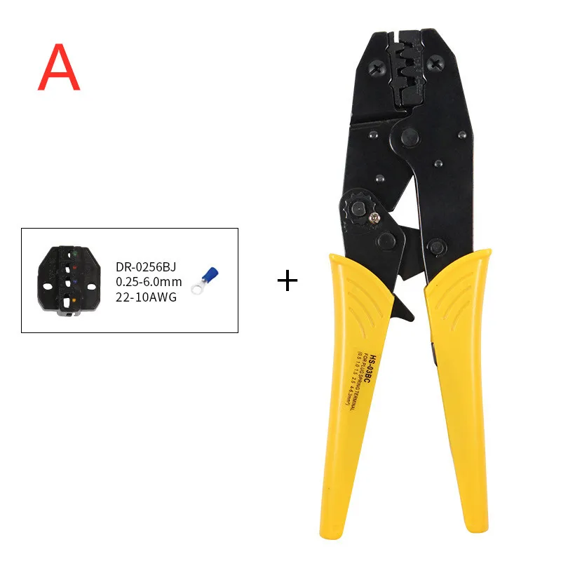 Model: HS-03BC Features: Crimping Applicable object: Terminal, cable Material: High carbon steel Handle material: PC plastic Size: 272 × 121 × 63mm²