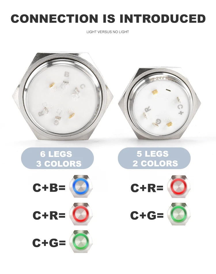 Ультра-короткая многоцветная металлическая кнопка 12 мм особенная. Есть только 2 цветовых контакта, и можно использовать только два цвета. Положительные и отрицательные полюсы обычно красные при подключении, а обратное соединение зеленое. Пожалуйста, обратите внимание!