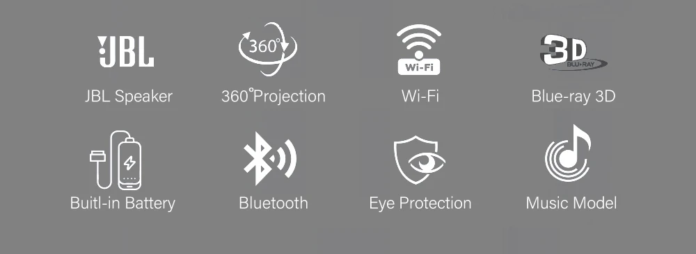 1. Встроенный аккумулятор 12000 мА · ч, маленький размер, можно доставить в любой место 2. Вращение на 360 градусов, выбор произвольного угла проекции 3. Две стереосистемы JBL 3 Вт, шокирующие звуковые эффектов для пользователей 4. Чтение SD карты (Micro SD), (максимальная поддержка 32 Гб SD карты) 5. Встроенная память 16G