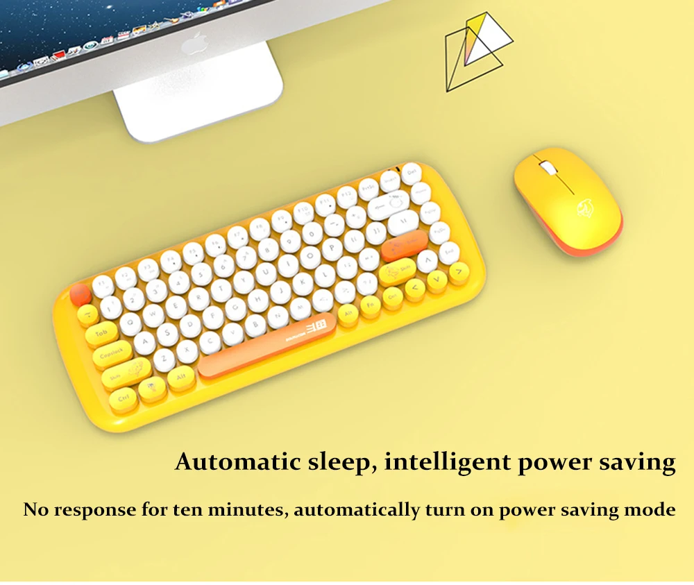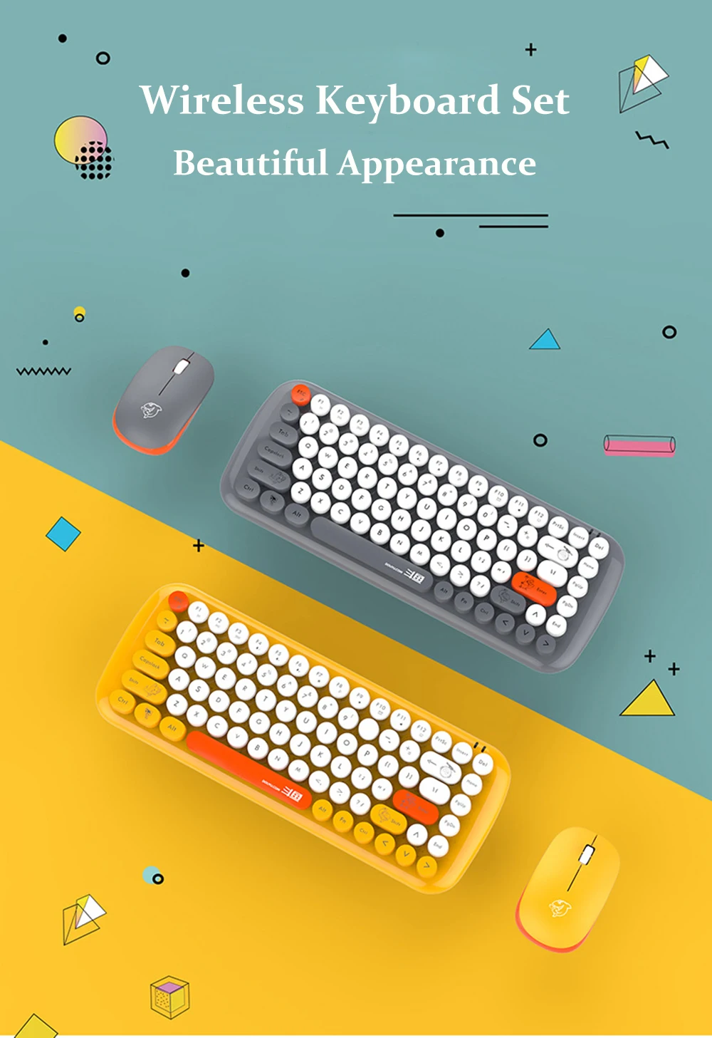Милая игровая клавиатура, мышь, набор, круглая кнопка 2,4G USB, беспроводная клавиатура, бесшумная мышь для Macbook Lenovo Dell Asus, ноутбука, компьютера