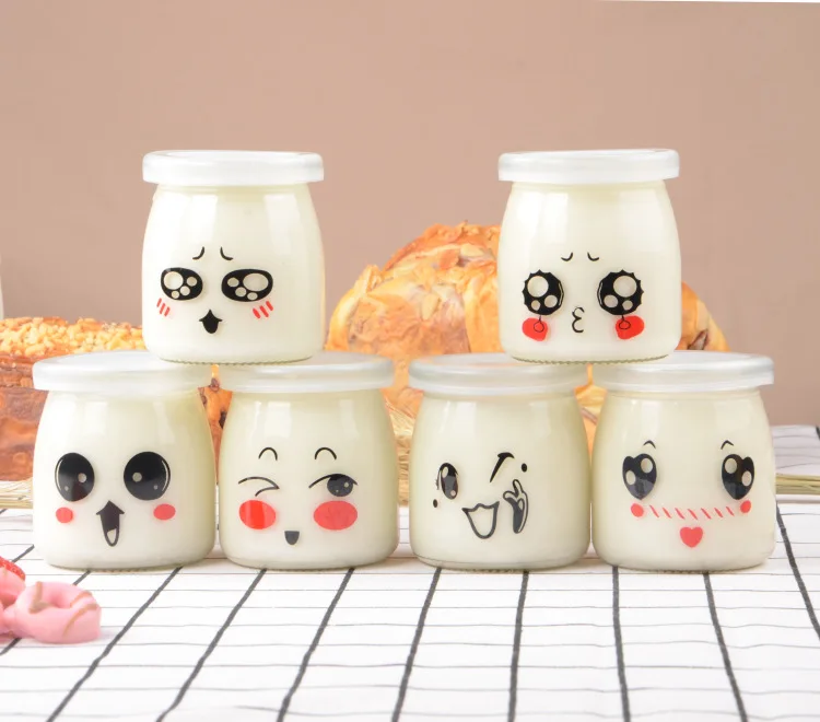 -Каждая баночка для йогурта поставляется с разным мультяшным рисунком лица, выглядит очаровательно и порадует ваших вечерние гостей.