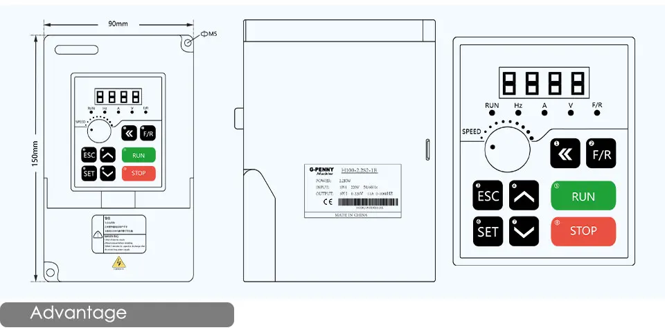 ◆Два режима контроля скорости: без PG векторного управления (SVC), V/F управления◆ Без векторное управление (SVC): пусковой крутящий момент 0,5 Гц до 150%◆ 8-ступенчатая простая функция PLC, мульти-контроль скорости и ПИД-регулятор◆ Поддержка нескольких настроек частоты: Цифровая настройка, аналоговая Настройка, PID Настройка, RS485 Настройка связи◆ Терминалы ввода/вывода могут быть свободно запрограммированы для комбинирования нескольких рабочих режимов в соответствии с потребностями пользователя.◆ С функцией управления частотой скачка, он может эффективно подавить механический резонанс и сделать систему более стабильной и надежной.◆ С мгновенной функцией удержания питания, она может избежать воздействия производства из-за мгновенного отключения питания◆ С большим крутящим моментом и при обнаружении крутящего момента◆ Функция автоматической регулировки напряжения для эффективного решения проблемы низкочастотного колебания двигателя высокой мощности◆ Обеспечивает различные функции защиты от неисправностей: перегрузки по току, перенапряжения, перенапряжения, перегрева, перегрузки, отсутствия одинакового контроля в реальном времени и защиты для обеспечения безопасной эксплуатацииПрименение:Намоточная машина, миксер, экструдер, резки, намотки, компрессор, вентилятор, насос, шлифовальная машина, конвейер, Лифт, центрифуга и другие машины контроля скорости.Не устанавливайте инвертор самостоятельно, если вы не знаете, как это сделать, или это сделает шпиндель и инвертор легко гореть.