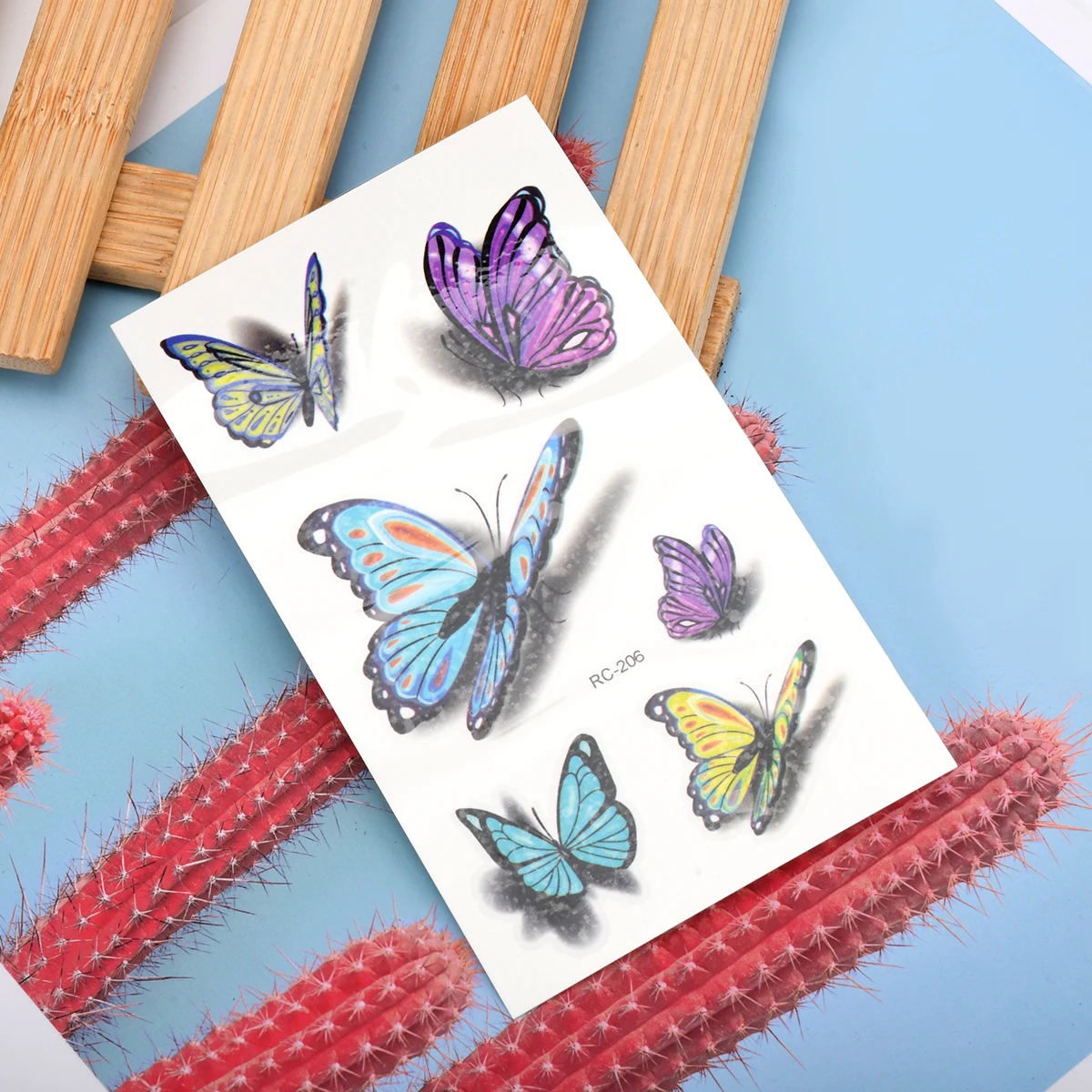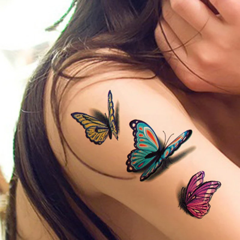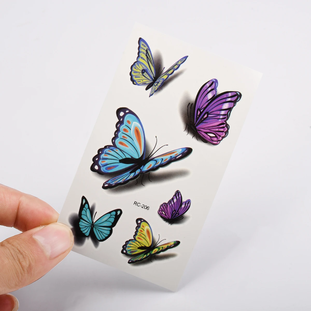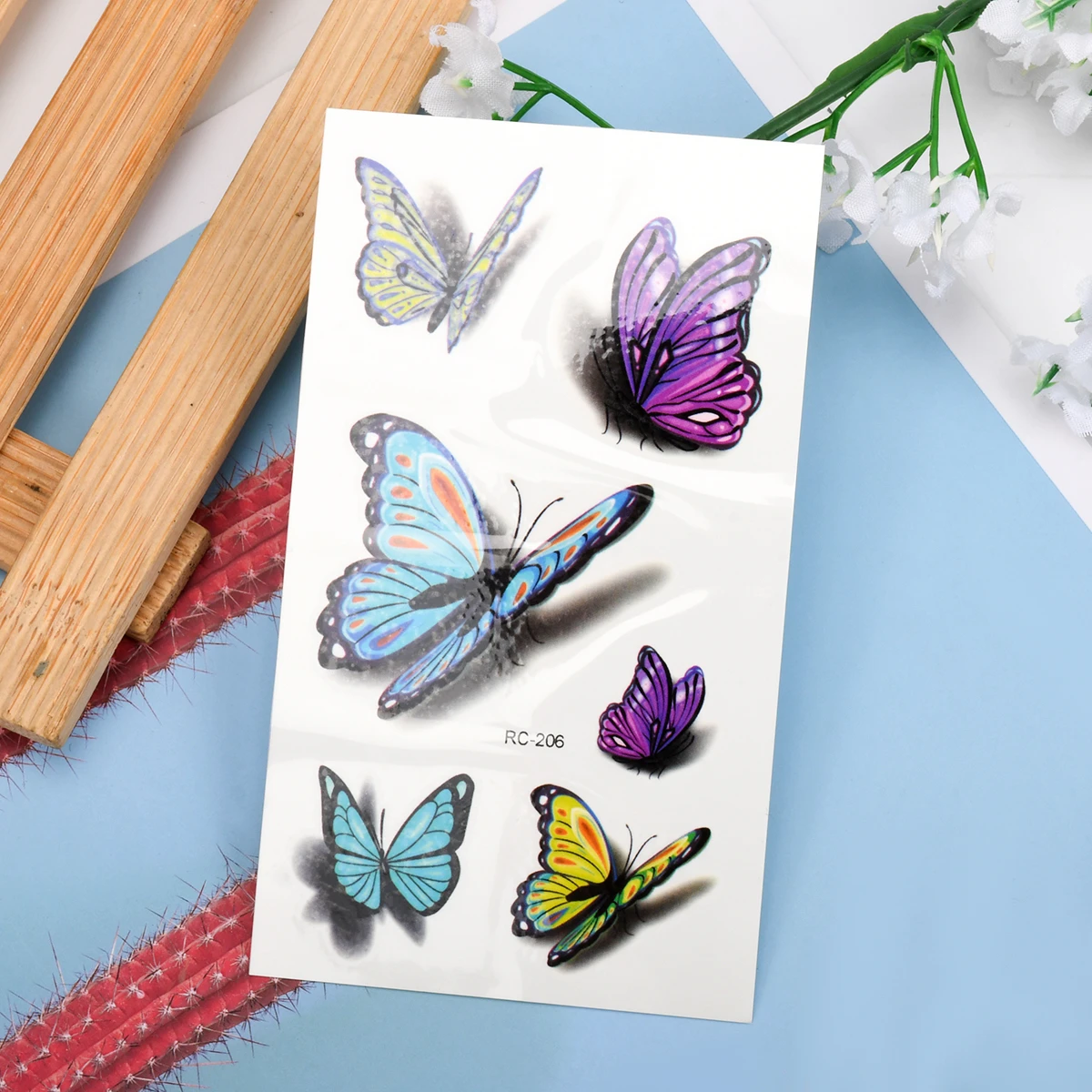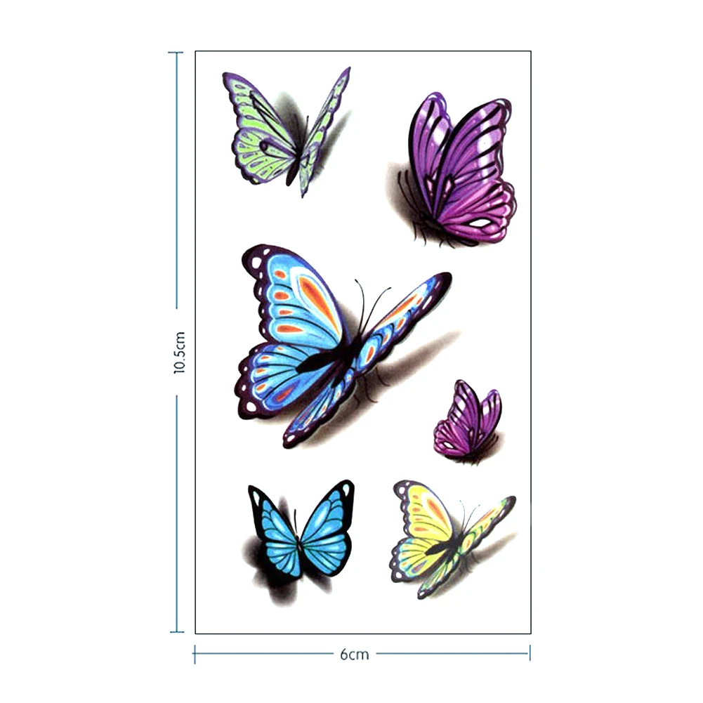 Waterproof Temporary Tattoo Sticker 3D Butterfly Tattoo Color Flash Trendy Tattoo Small Neck Hand Arm Shoulder Fake Tattoo