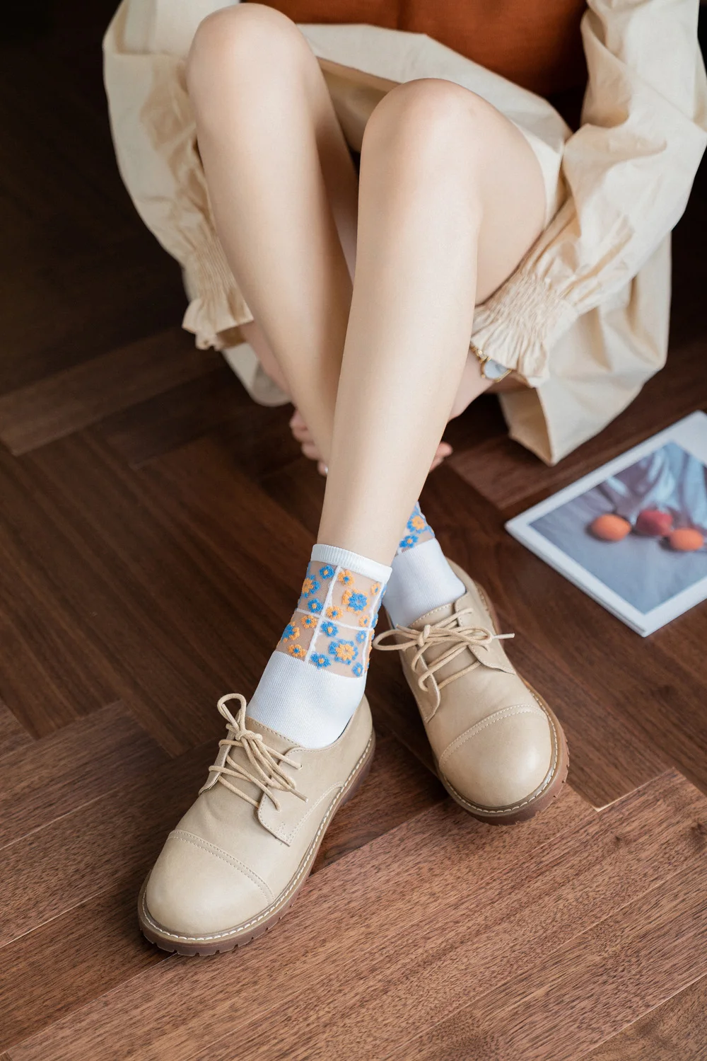 Romantic Spring Summer Daisy Flower Socks Women Fairy Transparent Crystal Silk Embroidered Flower Ankle Breathable Thin Flowers Korean Style Lady Socks
