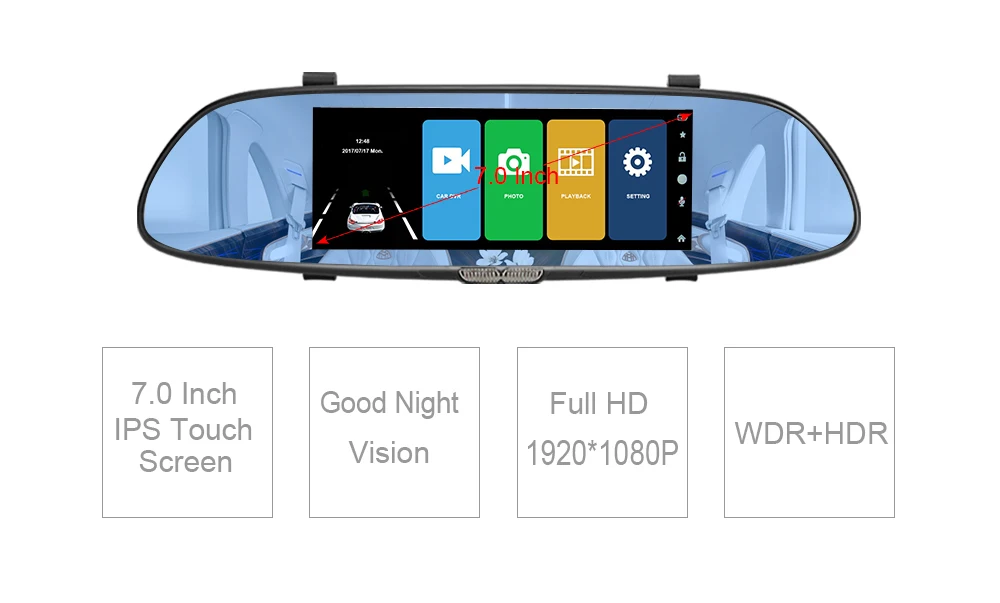 Фронтальная камера с широкоугольным объективом 170 градусов, имеет большой экран 7,0 дюйма, может иметь супер-вид. Объектив задней камеры с угол 140 градусов, хороший вид для заднего хода.