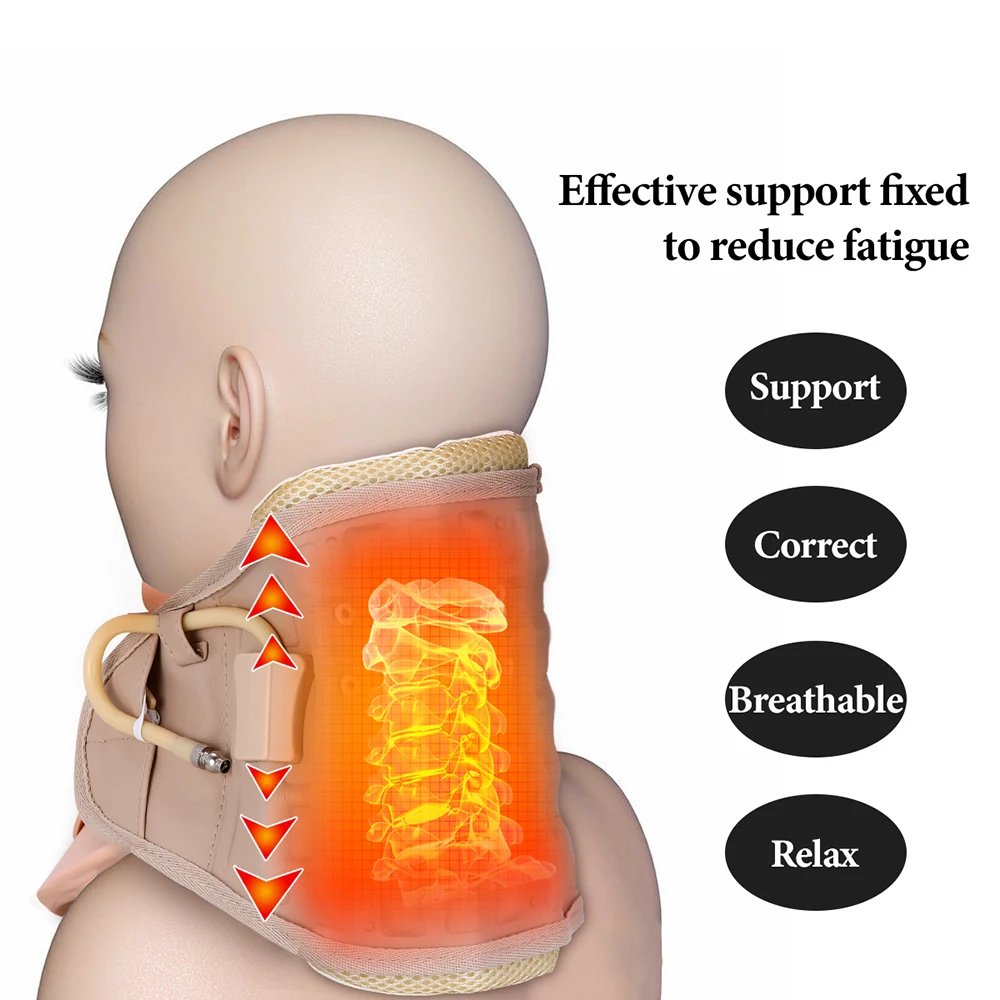 Фиксатор для шеи с воздушной тягой-это вспомогательное устройство, помогающее людям с шейной спондилопатией заниматься самолечением, частое использование устройства поможет людям предотвратить спондилопатию шейки матки, избавит от боли в шейке и усталости, высвобождение клинических симптомов с помощью воздушной тяги. Он разработан на основе различных функций, таких как пневматическая тяга, фиксация, это здоровый друг здоровья для людей, особенно для людей среднего и пожилого возраста.