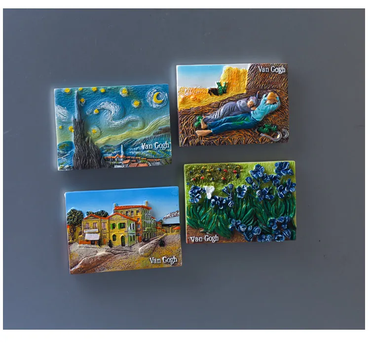 Name: Vango painting fridge magnet Size:8*5cm Material:Resion Pls note: If the refrigerator door is made of toughened glass, it cannot be absorbed. The magnet can only be absorbed on the surface of iron. 1. It is not recommended to let childre play it as toys. 2. Adjust the position of the refrigerator sticker. Please take it off directly, do not rub it on fridge surface, or it will hurt your fridge surface. 3. Resin is fragile, don't drop it.