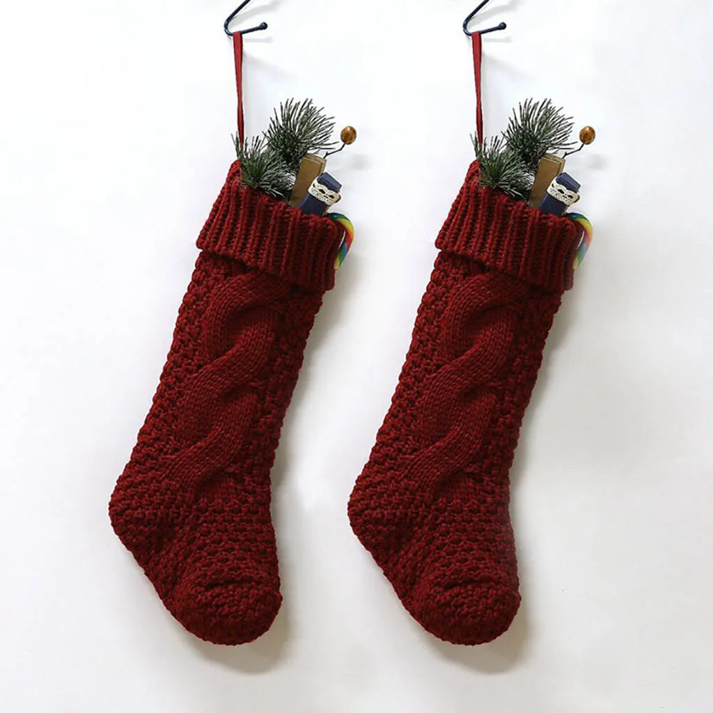 Рождество Праздничный вязаный чулок, висящий крючком, украшение для дерева