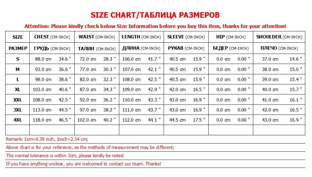1. Пожалуйста, внимательно проверьте таблицу размеров перед покупкой. Если у вас есть какие-либо вопросы об этом, пожалуйста, оставьте сообщение, чтобы сказать мне ваши веса и высоты, мы поможем выбрать правильный размер!
