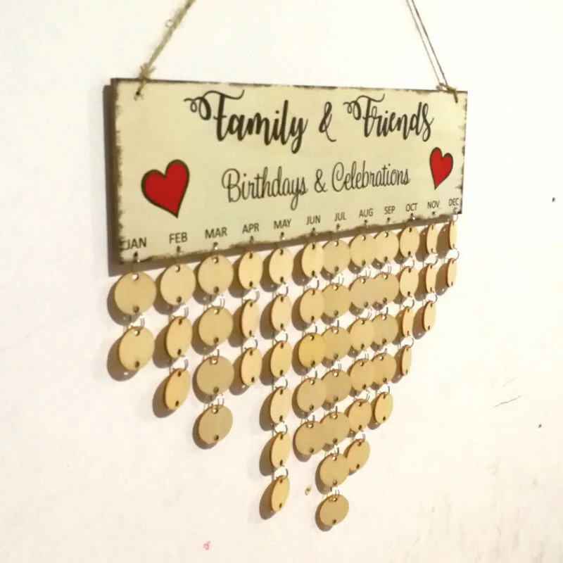 * Бесплатно размещайте диски на доске или рисуйте их так, как вам нравится, просто напишите имя, дату, большие события и т. д. на деревянных дисках, а затем Повесьте их под соответствующий месяц.