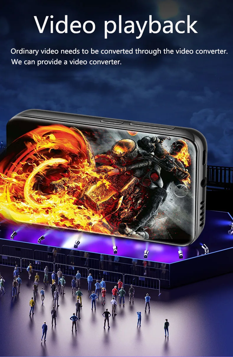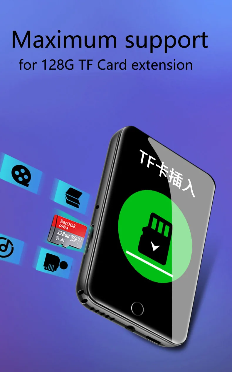 Спецификация:1. Модель: M72. Экран Размер: 2,8-дюймовый TFT Полный сенсорный экран Экран3. Память: 8 ГБ/16 ГБ4. Расширительная карта: поддержка расширения Micro SD карты5. Способ работы: Нажмите и нажмите6. Интерфейс: USB 2,07. Язык меню: английский, русский и около 20 других языков8. Размер изделия (приблизительно): около 7.62X 5,8X1,15 см9. Цвет: черный10. Формат воспроизведения видео: AMV11. Формат воспроизведения музыки: MP3 / WMA / APE / FLAC / WAV / DRM / ACELP формат12. Дополнительные функции: музыка, видео, запись, радио, шагомер, изображения; Электронная книга, Bluetooth, журнал, переключение основной темы интерфейса13. Bluetooth: Да, V5.0. Прямое расстояние составляет около 10 метров без препятствий14. Время зарядки: около 2 часов (спецификация зарядки 500ma-1A выход)15. Встроенный аккумулятор: емкость литиевой батареи 500 мАПримечание: Продукт имеет встроенное программное обеспечение преобразования, вам нужно работать на компьютере, чтобы конвертировать другие форматы видео в формат AMV для воспроизведения.