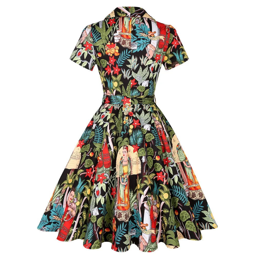 2021 женское винтажное Хлопковое платье sd0002, женское платье большого размера с коротким рукавом и цветочным принтом в виде животных, 50s, ретро платье рокабилли