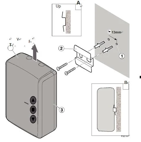 3. Установите панель управления (3) на кронштейне, подвешивая его с верхней вкладки (см. Подробности [B]).