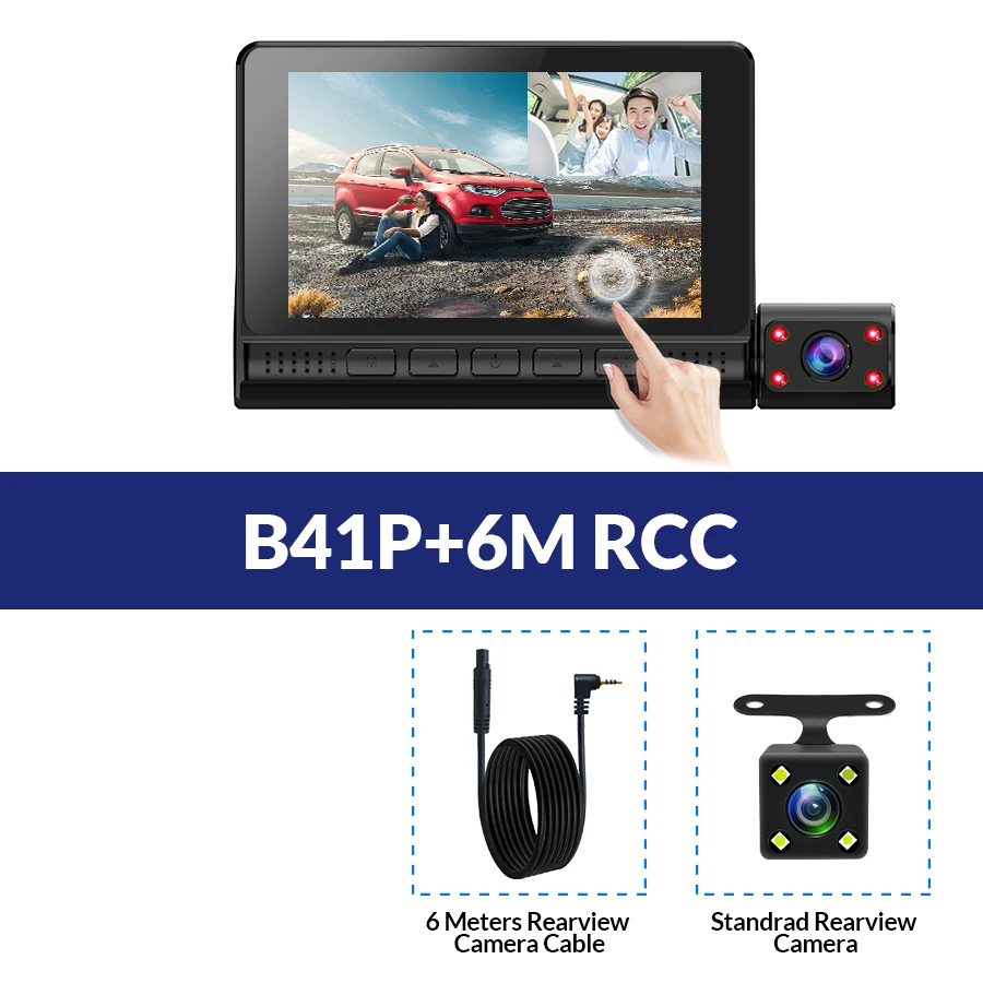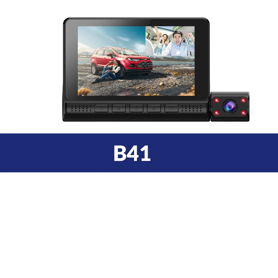 Особенности и технические характеристики Тип установки Портативный регистратор, подходит для всех транспортных средств с ветровым стеклом Размер экрана (дисплея) 4,0-дюймовый IPS экран (B41), 4,0-дюймовый сенсорный экран (B41P) Чипсет (процессор/ЦП) JIELI Датчик камеры Спереди 2MP + внутри 1 MP + сзади 1MP Объектив камеры Передняя + внутренняя + Задняя; 6 стекла + 4 стекла + 4 стекла; Угол 170 градусов + угол 120 градусов + 140 градусов; Диафрагма F2.0 + диафрагма F2.2 + диафрагма F2.2 Разрешение видео Спереди: 1920*1080P @ 25 кадров в секунду; Внутри: 640*480P @ 25 кадров в секунду; Сзади: 640*480P @ 25 кадров в секунду Разрешение фото 12 м Видео-код H.264 Аккумулятор Встроенный (встроенный аккумулятор очень маленький, не может поддерживать работу, только для экономии времени и настройки, пожалуйста, используйте оригинальное зарядное устройство при работе) Языки OSD Английский, русский, китайский, японский, корейский и т. Д. ..... (Если вы хотите другие языки, сообщите нам, мы поможем вам добавить его) Основные характеристики G-сенсор, циклическая запись, обнаружение движения, монитор парковки, отображение времени и данных, широкий динамический диапазон, изображение на изображении, включение/выключение автоматически Карта памяти Карта Micro SD, класс 10 и 8 Гб до 32 Гб (не входит в комплект) Обновление задней камеры Поддержка кабеля задней камеры макс. 12 метров Добавить функции Ночное видение... Больше возможностей Скоро ..... Упаковочный лист Основные: 1 х упаковочная коробка1. Не беспокойтесь о несчастных случаях