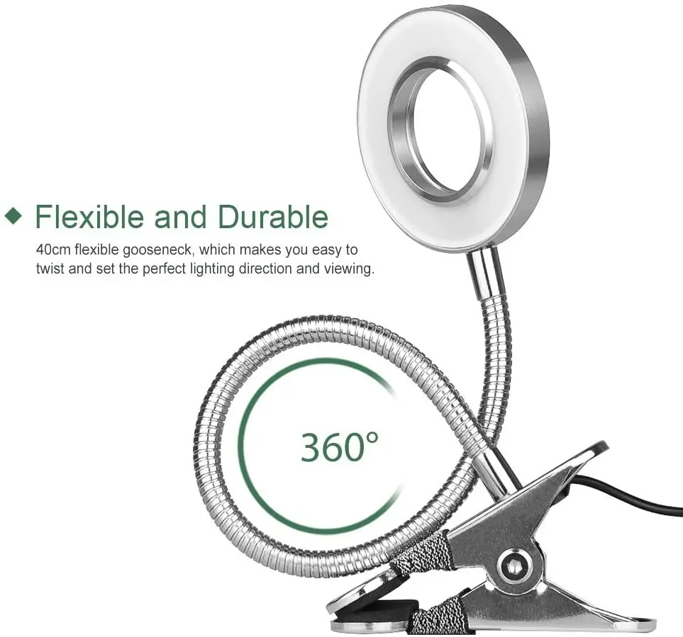 Тип источника: светодиодный светильник Напряжение: 5v Мощность: 5 Вт Световой поток: 500lm Цветовая температура: теплый светильник s + белый светильник + Естественный светильник Материал корпуса: алюминий Мощность Блок питания: usb Угол освещения 120 градусов Тип переключателя: сенсорная кнопка Область применения: Исследование красоты макияж Срок службы: 50000h Характеристики: 3 цветовых температуры