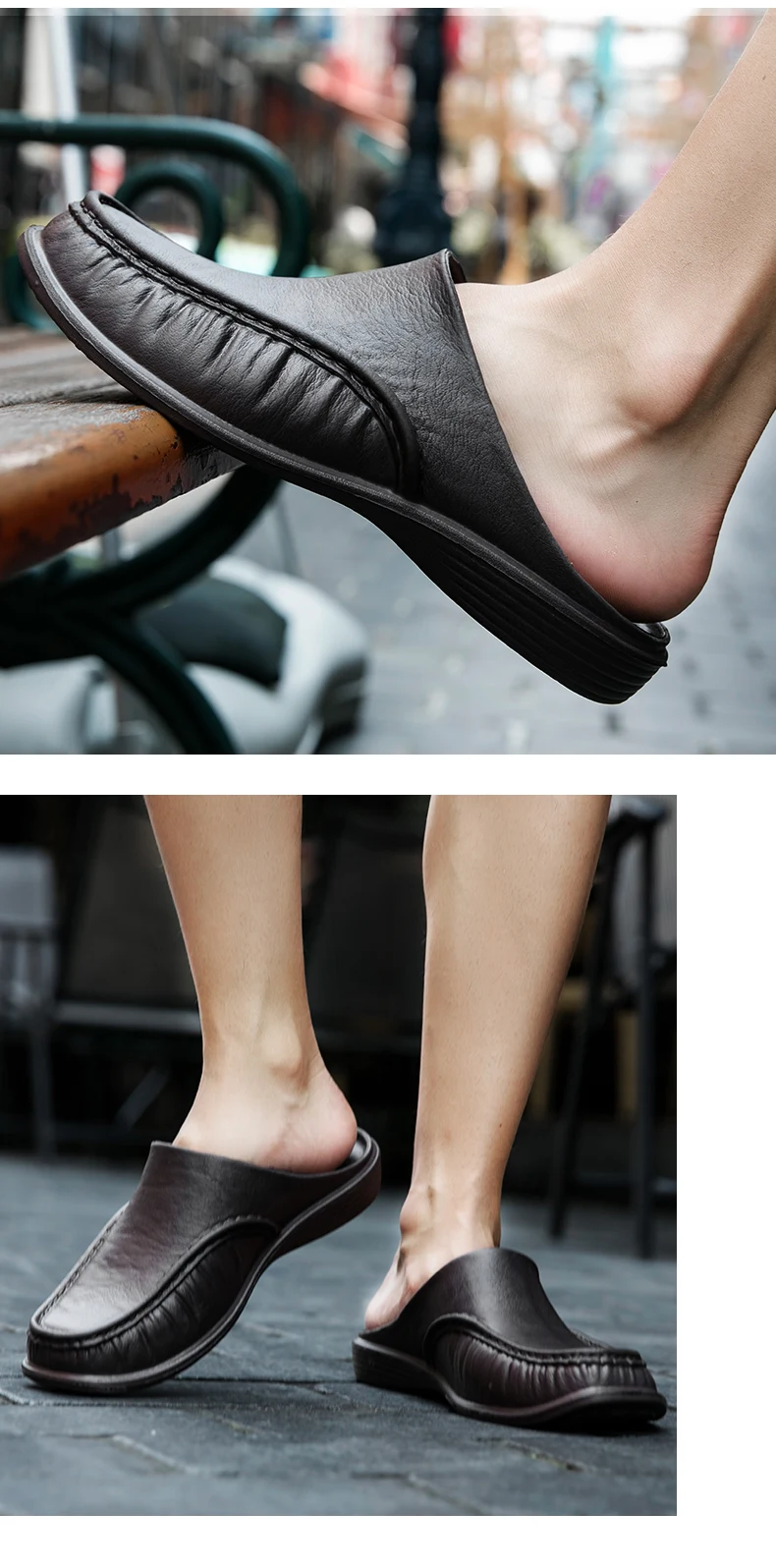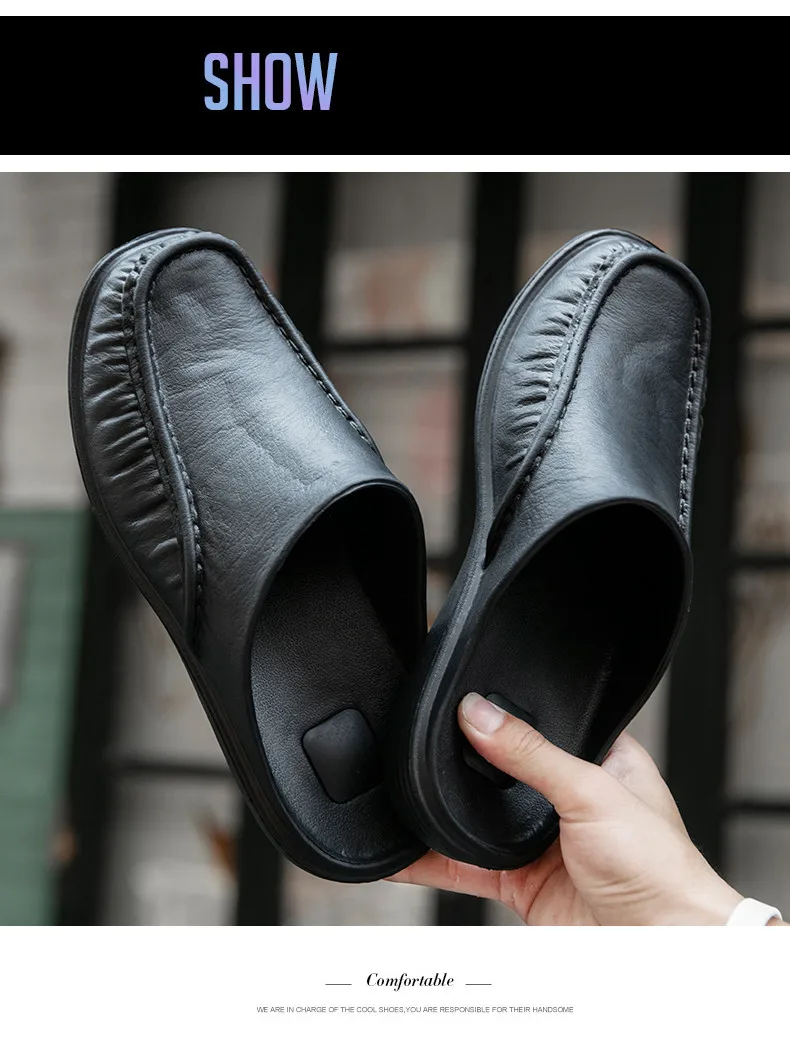 Мужская обувь; Сезон лето; Повседневная обувь; Комнатные тапочки; Британский стиль; Baotou; Половина сопротивления мужская кожаная обувь дышащая обувь без застежек для отдыха; Женская обувь на плоской подошве женские лоферы размера плюс
