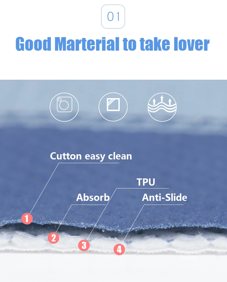 Моющаяся защита многоразового применения Водонепроницаемая подстилка для кровати для детей старшего возраста, подстилка из ТПУ для пациентов при недержании мочи, матрас Характеристики: Модель: ZQ-FSMA-4C01 Материал: хлопок/ТПУ/полиэстер Цвет: синий розовый Размер: 60*90 см 80*90 см 90*120 см 90*150 см 90*180 см 75*100 см 75*120 см 75*150 см Особенности: -Впитывающие, дышащие и водонепроницаемые. -Обеспечивает защиту от пылевых клещей, аллергенов и постельных клопов. -Машинная стирка и сушка для удобного ухода. Посылка входит: 1 х Водонепроницаемый пеленальный коврик в полиэтиленовом пакете Примечание: Этот пеленальный коврик является водонепроницаемым и может также поглощать небольшое количество воды. Средней толщины и средней мягкости, подходит для использования при любой температуре