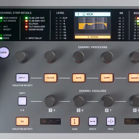 Крыло Вход каналы особенности короче спереди и длиннее сзади) с глубоким вырезом и hi-cut фильтры, наклон-EQ, пройти или звук Maxer, в дополнение к 6 параметрический эквалайзер. Все автобусы, матриц и сети даже особенность 8 параметрический эквалайзер. Кроме того, крыло предлагает 8 тщательных эмульсий известных аппаратных эквалайзеров для использования в каждом канале, когда вам нужно что-то особенное на ваших сигналах.