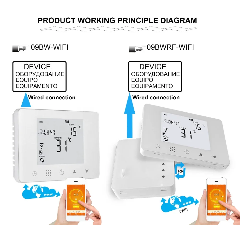 Энергосберегающий температурный контроллер RF & WIFI беспроводной комнатный термостат для bolier электрическое Отопление горячей воды