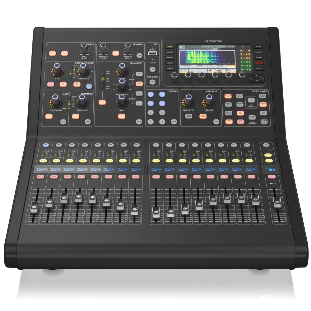 Midas M32R живая Цифровая микшерная консоль Особенности: Богатый, яркий звук от 16 Midas preamps Невероятно Прочный, но легкий, благодаря карбоновому волокну, алюминию и стальной конструкции Выдающийся путь сигнала с 48 кГц цифровым преобразованием Безупречное качество звука на протяжении всего пути сигнала, с выравниванием по времени и фазовой связью смешанных автобусов Лучшие в своем классе моторизованные фейдеры, рассчитанные на более 1 миллион жизненных циклов 32 канала записи и воспроизведения в режиме реального времени с помощью предварительно установленного модуля расширения Klark Teknik DN32-LIVE