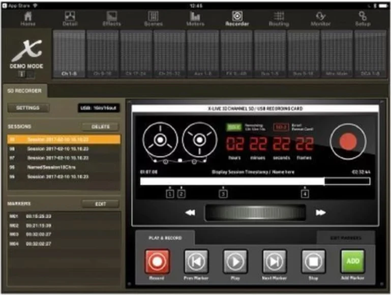 Автоматическое сложное отображение легко с помощью Cue List Легко запоминать конкретные настройки параметров или даже все макеты консоли с помощью функции M32R LIVE, благодаря новой функции Cue List. Это позволяет сохранить 500 записей Cue, которые вы можете использовать, чтобы мгновенно вспомнить любой из 100 сцен или 100 фрагментов. Сцены-это полные макеты платы, в то время как фрагменты-это снимки параметров, которые можно отозвать, не влияя на остальную часть сцены. Если вам нужно загрузить совершенно новый макет платы или просто напомнить конкретные настройки эквалайзера для конкретной песни, список Cue M32R LIVE делает его быстрым и легким. 32 канала записи и воспроизведения в реальном времени Midas M32R LIVE предлагает 32 канала записи и воспроизведения, благодаря предварительно установленному DN32-LIVE Klark Teknik. Этот модуль расширения дает вам в течение трех часов 32-канальный, 32-бит/48 кГц запись о товарах двойного назначения SD-карты. Кроме того, функция выборки позволяет продлить время работы обеих sd-карт более чем на 12 часов записи 8 треков. Вы также можете записывать непосредственно на свой компьютер через USB. Захват многоканального аудио, выполнение виртуальных саундчеков, добавление бэк-треков, установка и управление маркерами и многое другое. Вы также получаете удаленную работу через компьютер, умное устройство или поверхность управления. DN32-LIVE-вы будете удивлены, как Вы ладили без него.