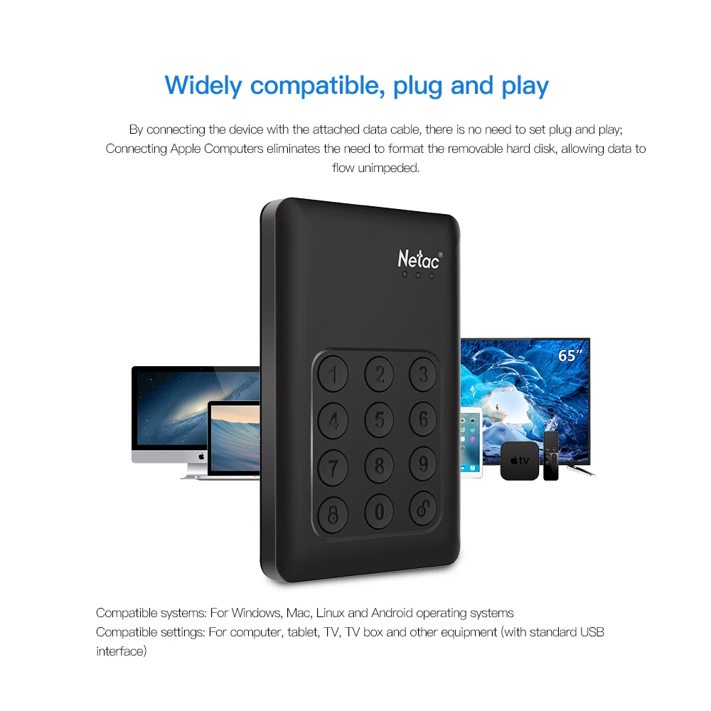Оригинальный Netac K390 2 ТБ 1 ТБ Портативный 2,5 "USB 3,0 HDD Hardware Шифрование Мобильный Внешний жесткий диск для обеспечения безопасности данных