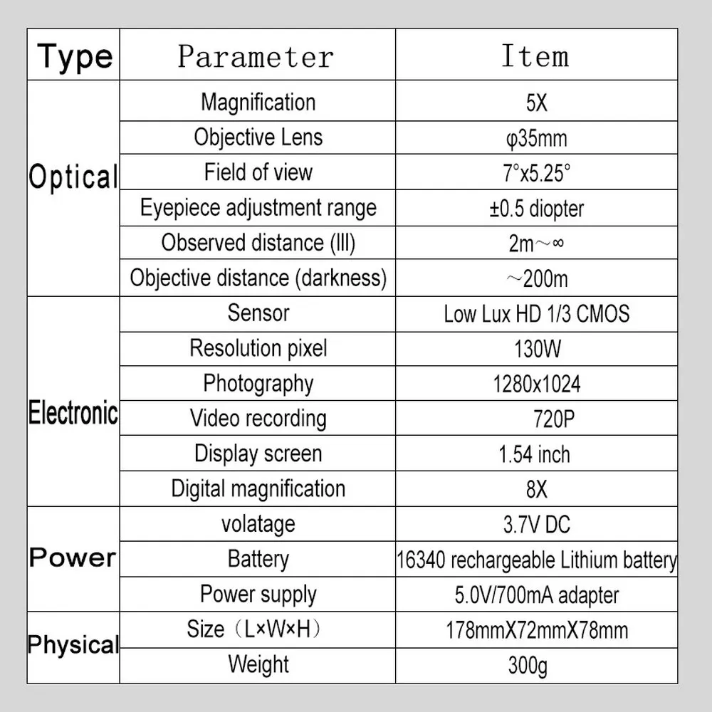 Посылка ночного видения включает в себя: