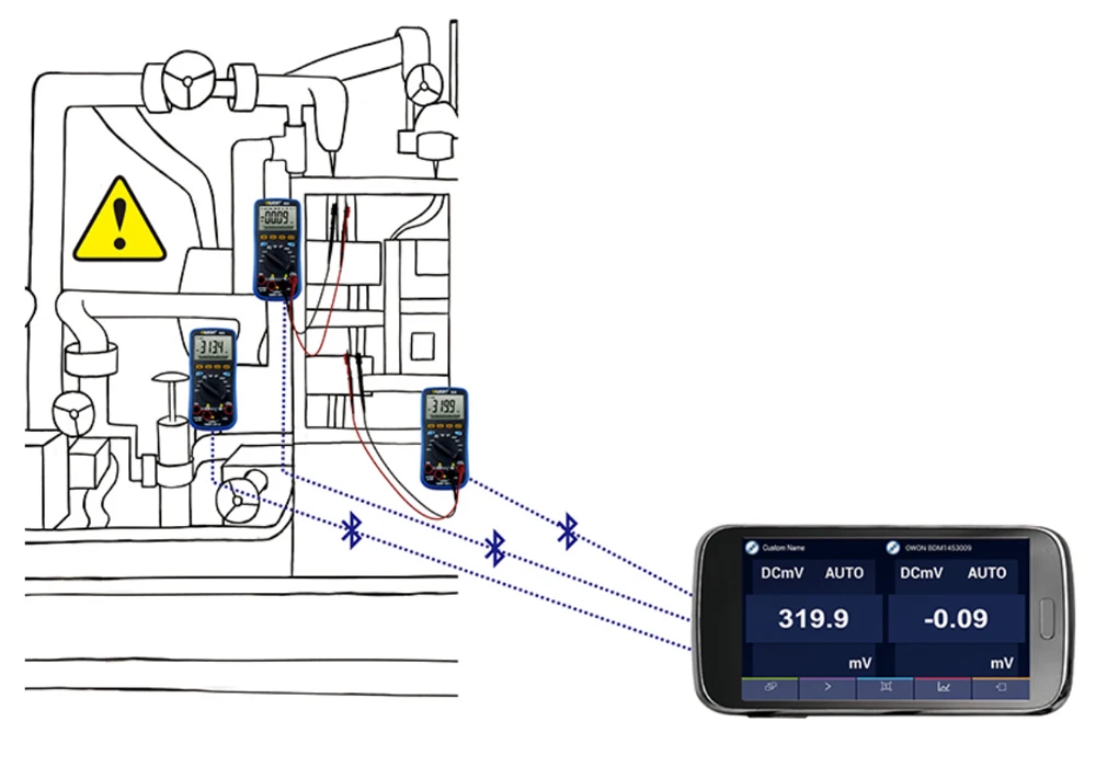 Несколько единиц DMMs возможно связаться с мобильным приложением, освобождая людей от прикосновения к измеряемому объекту, безопасность человека полностью гарантируется.