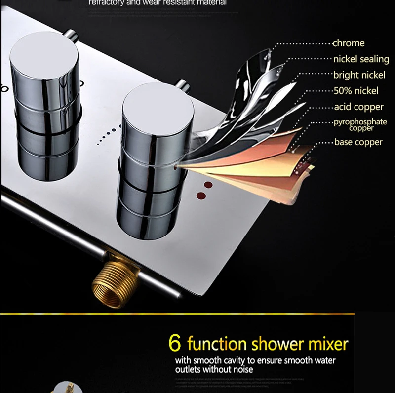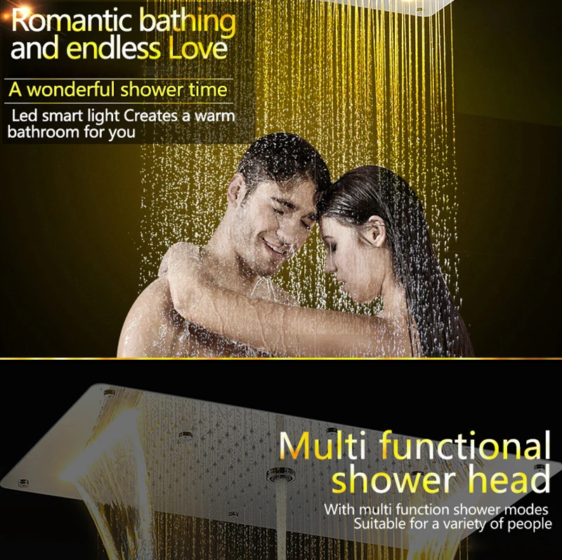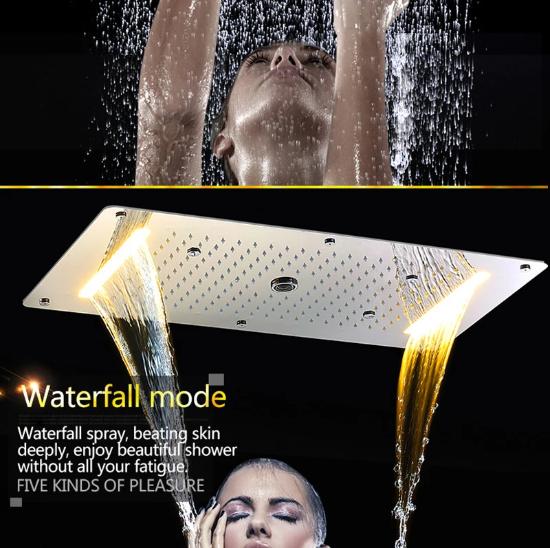 Душевой набор для ванной комнаты, смеситель для горячей и холодной воды с насадкой водопад на светодиоды для потолка в душе градусов, термостатический скрытый душ
