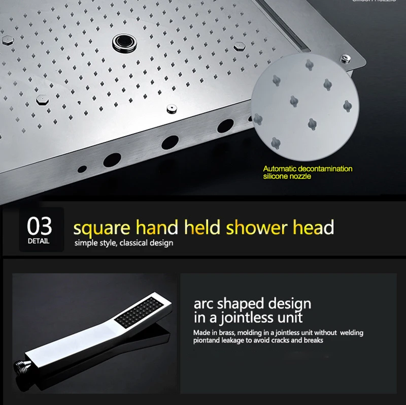Функции: массажный водопад, спа-туман, дождь, боковой распылитель, Водяной столб и ручной душ, цвет светодиодной подсветки белый. Вы можете испытать настоящий дождь, когда вы принимаете душ. Вы можете наслаждаться массажем водопада природы, спа, массажем столба воды в домашних условиях. Снимите давление и отпустите действие дня